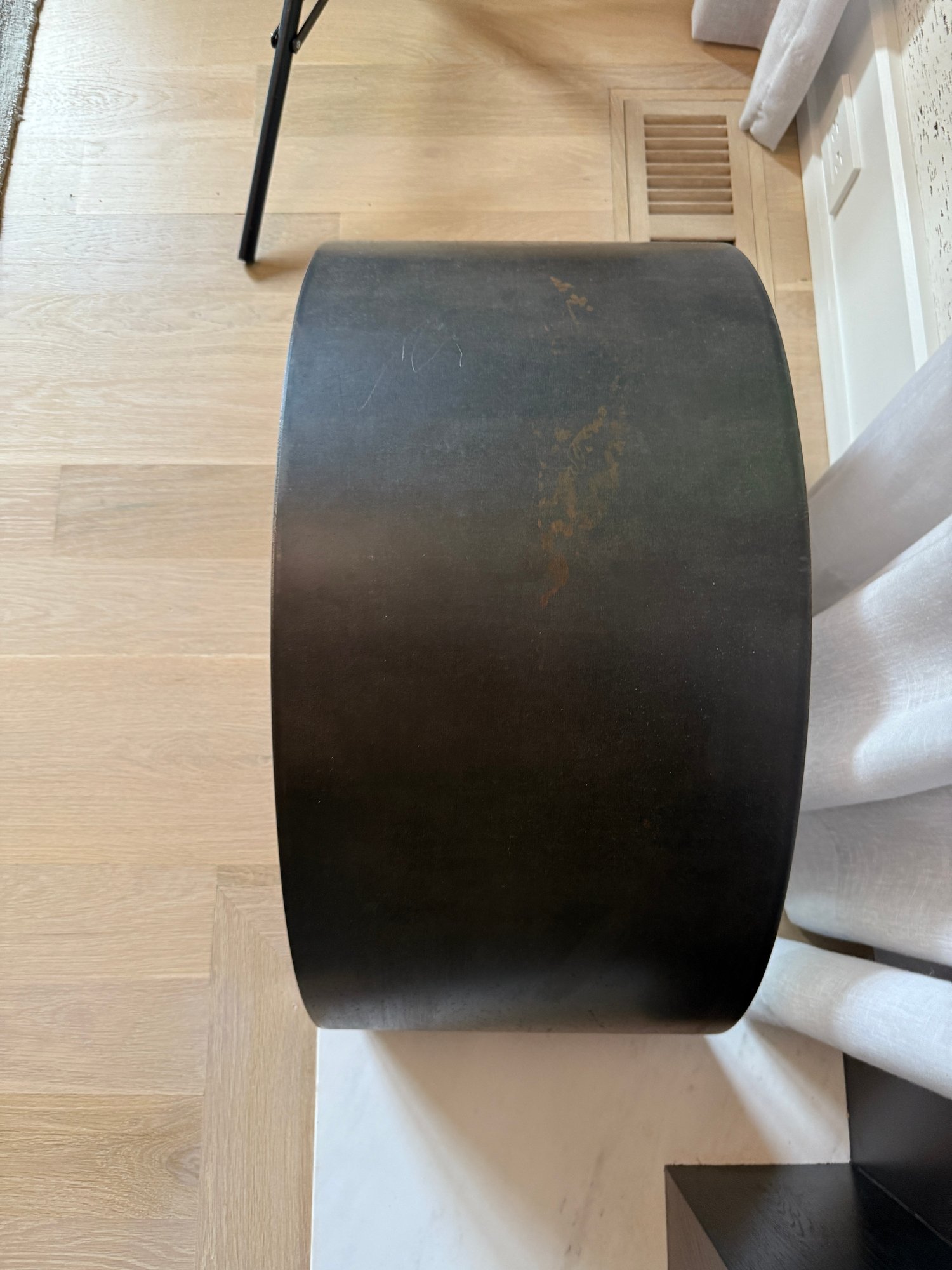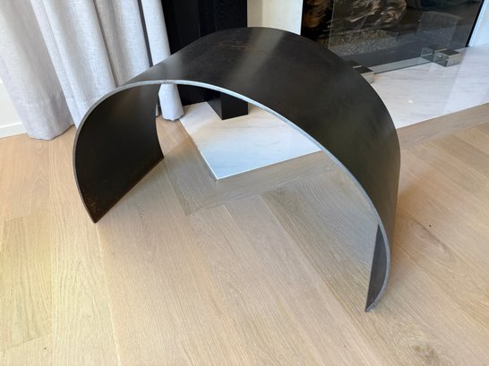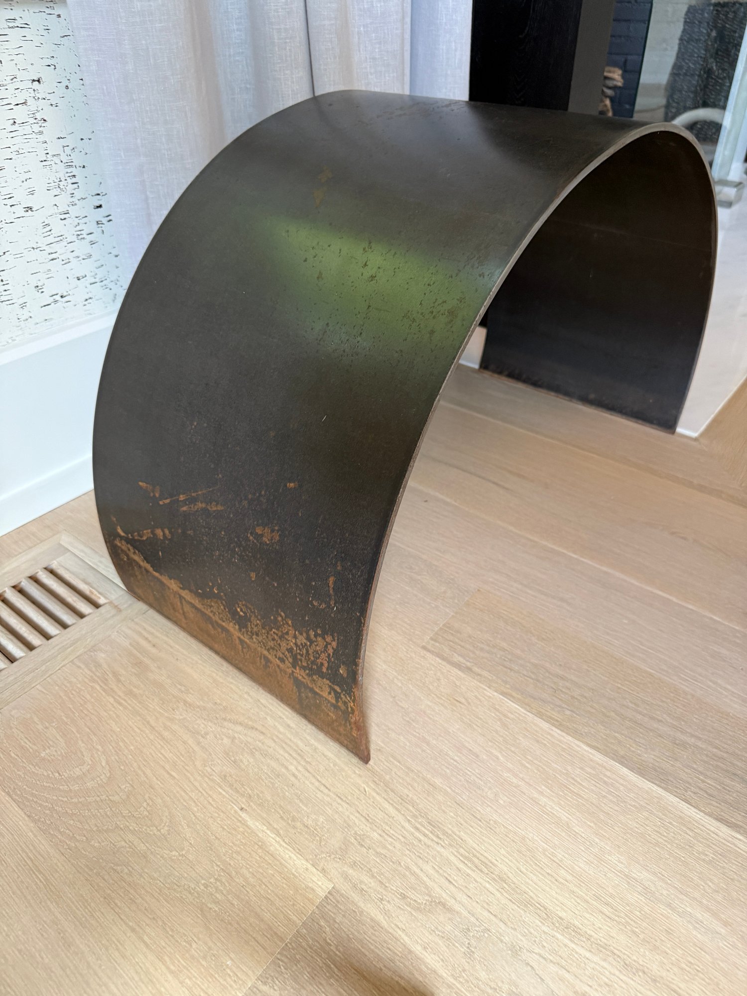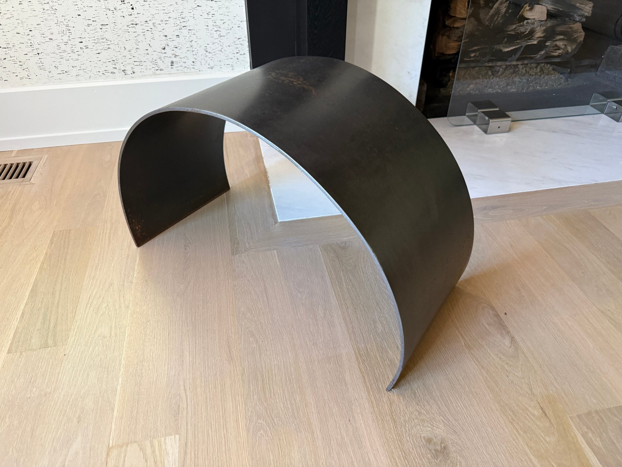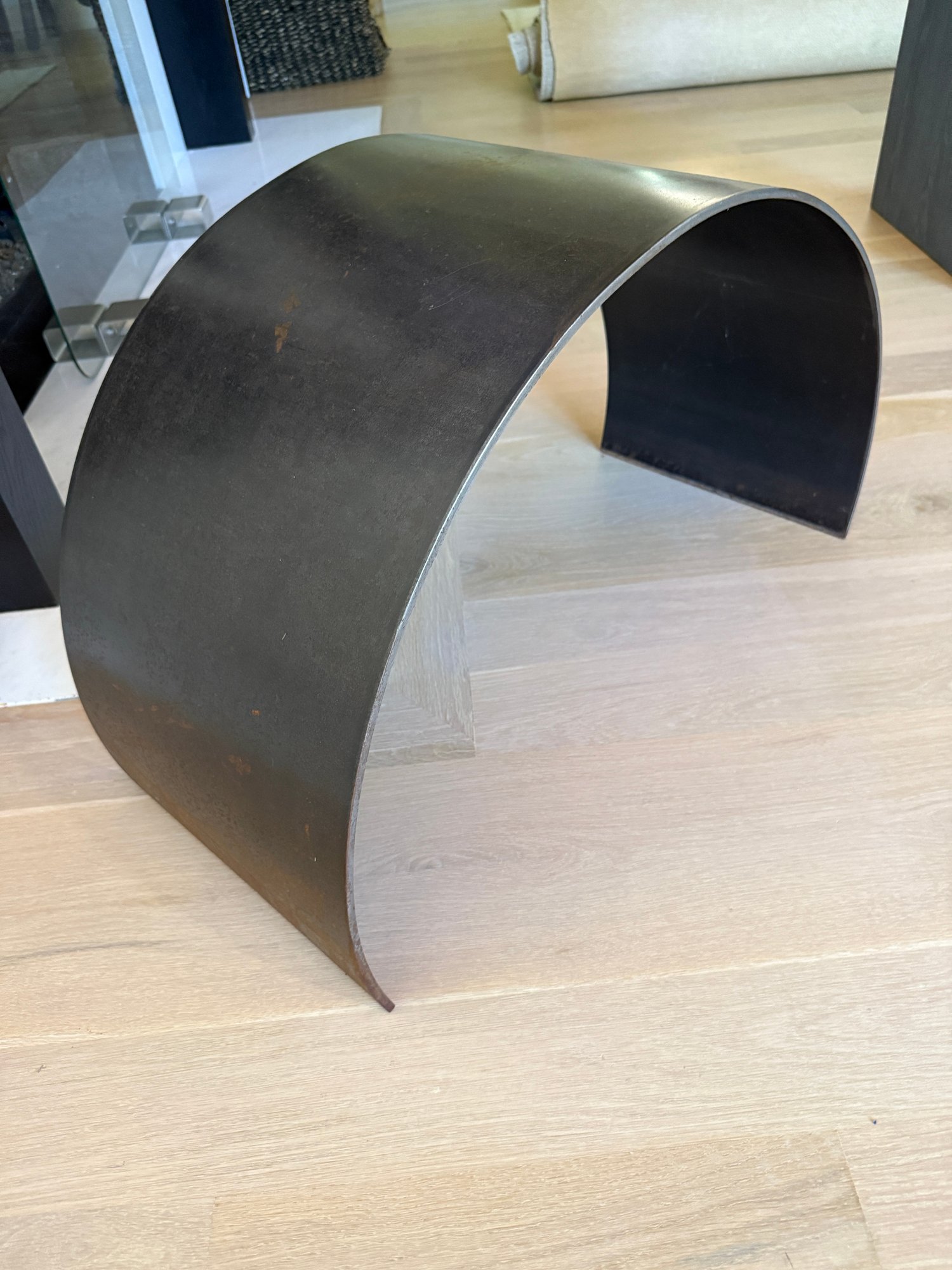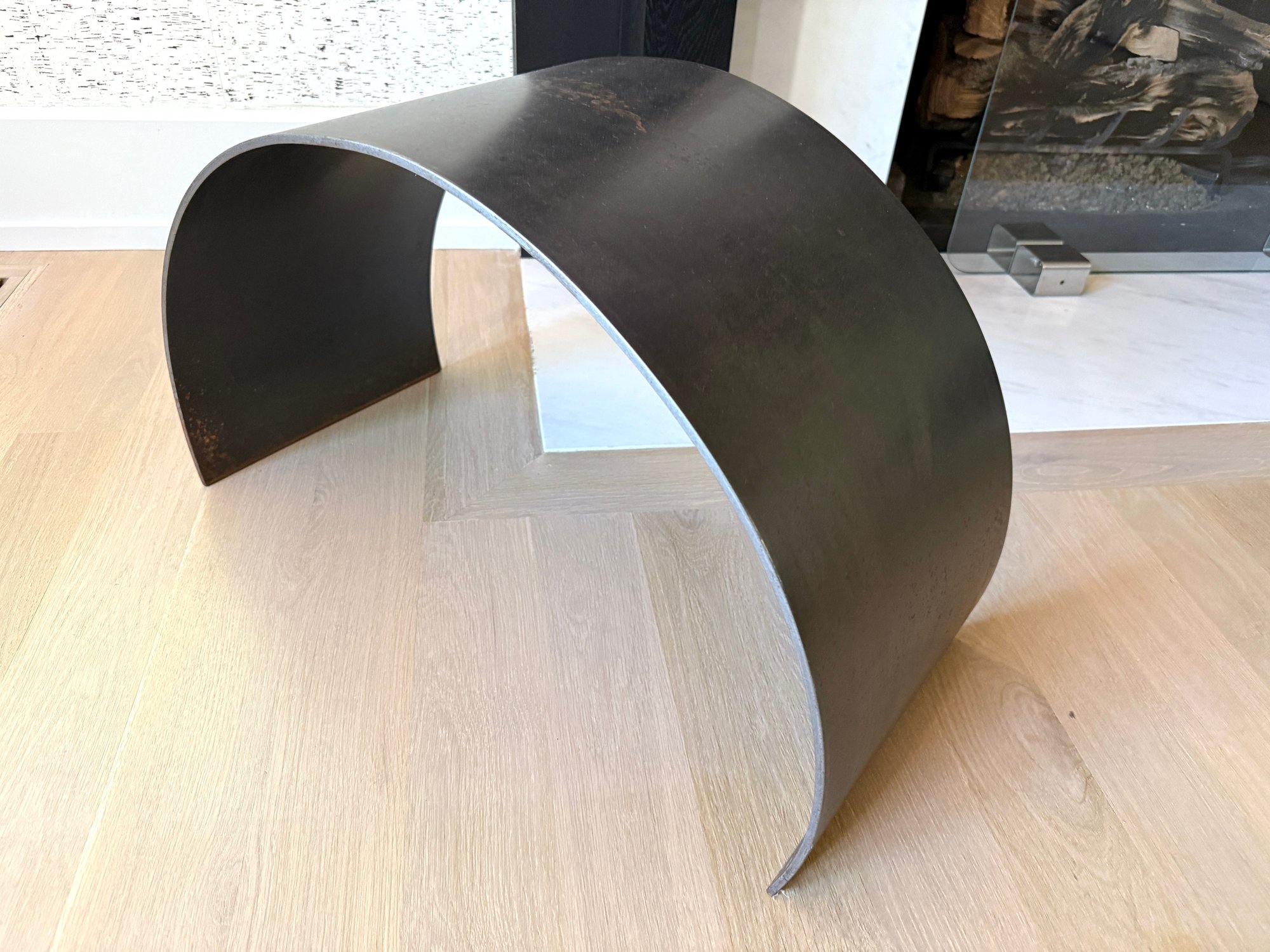 Made of raw steel, designed to develop a rich patina over tine. Inspired by the forms of artist Richard Serra.