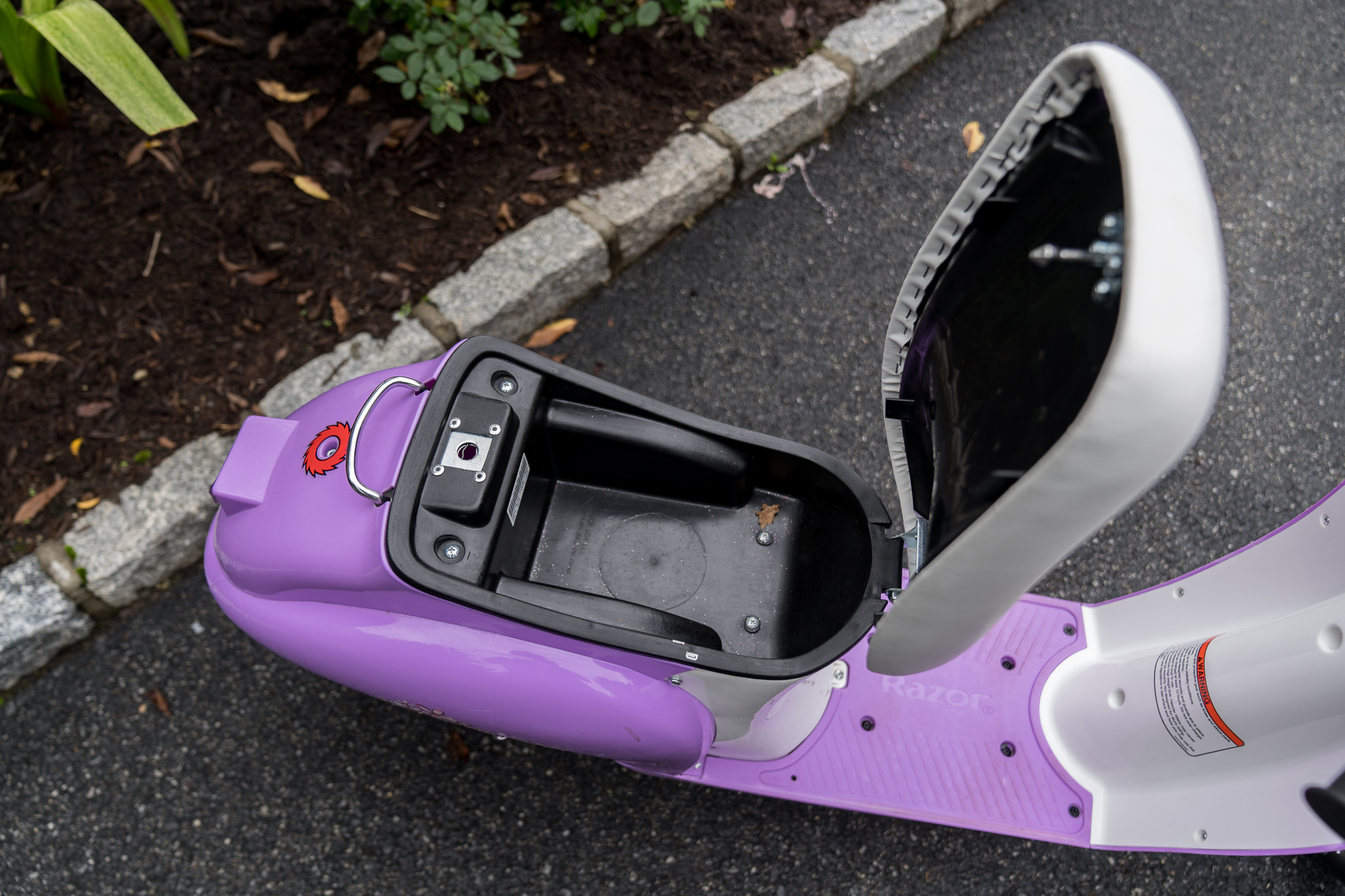 - Built-in Storage and Stability – The secret storage compartment under the seat makes it easy to carry your essentials with you, and the dual kickstand keeps everything upright.