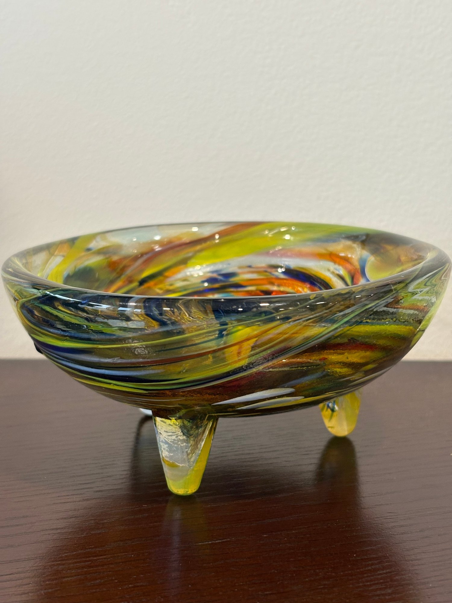1 Recycled Swirled Glass Bowl Footed Dish Handmade Mexican Handcrafted Mexico
