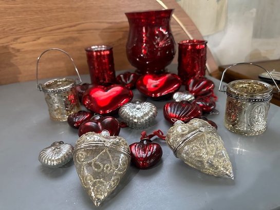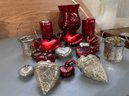 also red vase, votive holders . the lot is all glass