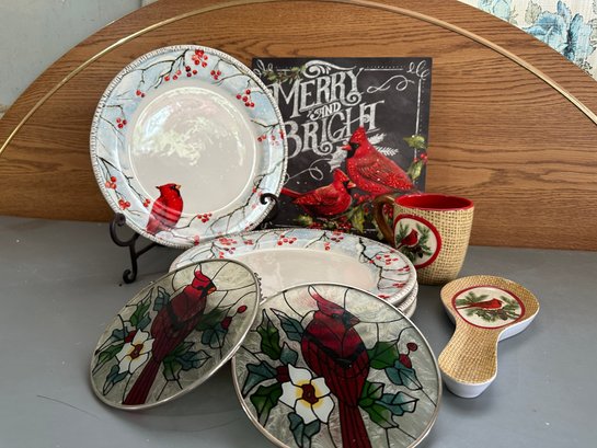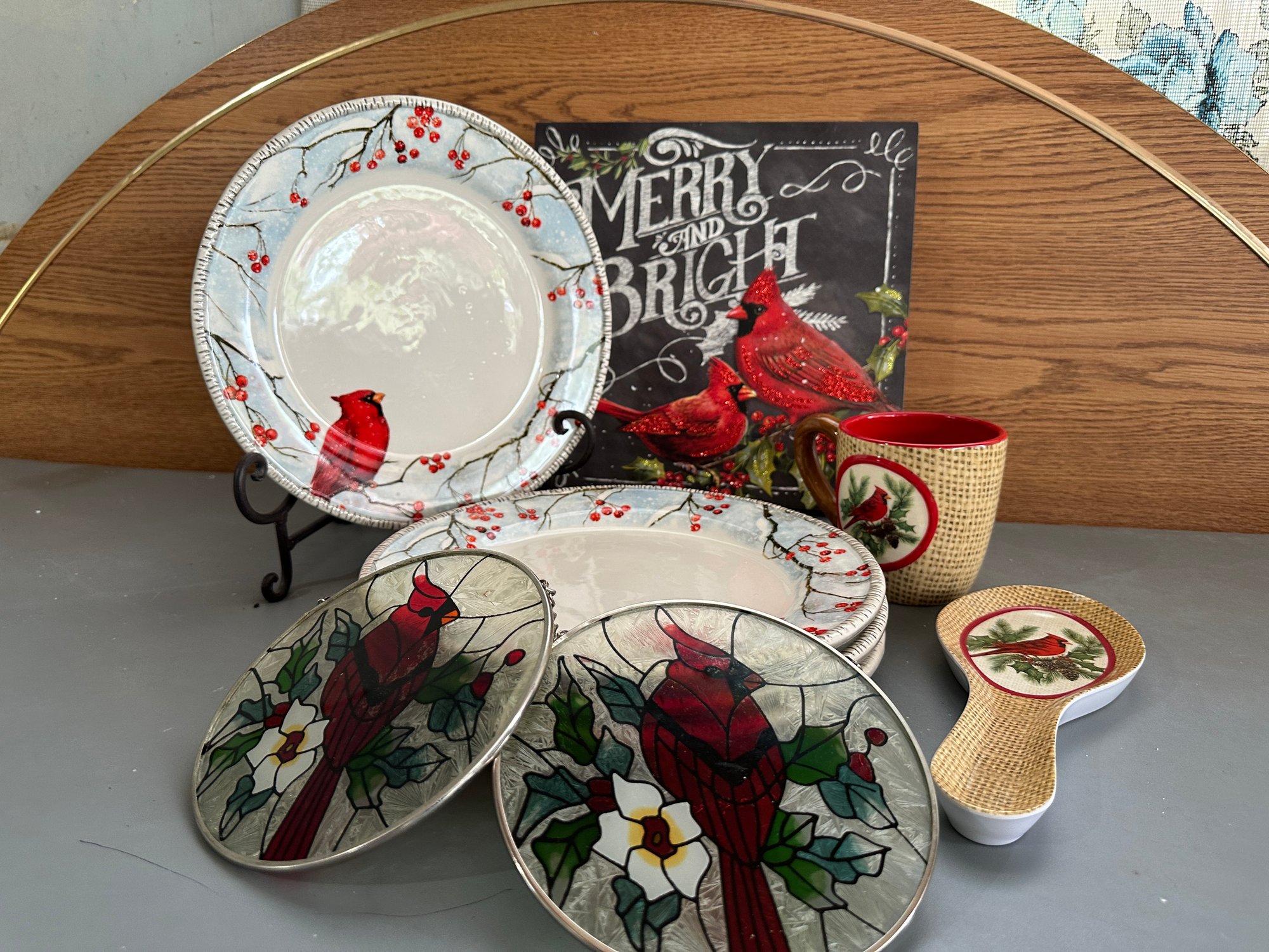2 sun catchers; 1 mug with matching spoon rest; 1 wallhanger; 4 dinner plates from Cracker Barrel