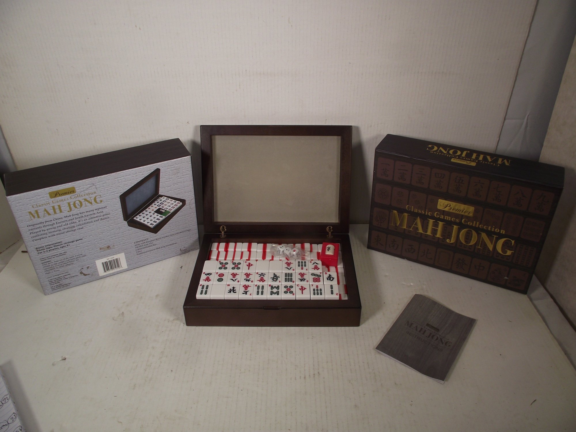 PREMIER CLASSIC GAME MAHJONG GAME 148 PIECES 3 DICE AND A RED SPINNERBLOCK IN BOX. SEE PHOTOS FOR CONDITION AND VARIETY.