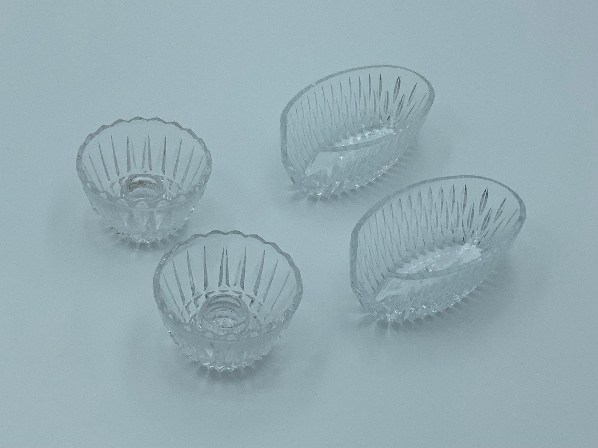 This lot includes a pair of candle holders and 2 cutlery rests. Cut glass in excellent shape - perfect for elegant parties or just for every day use.