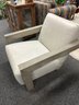 gray wood arms with gray leather seat and back arm to arm 31 seat height 16" matches end table in separate lot