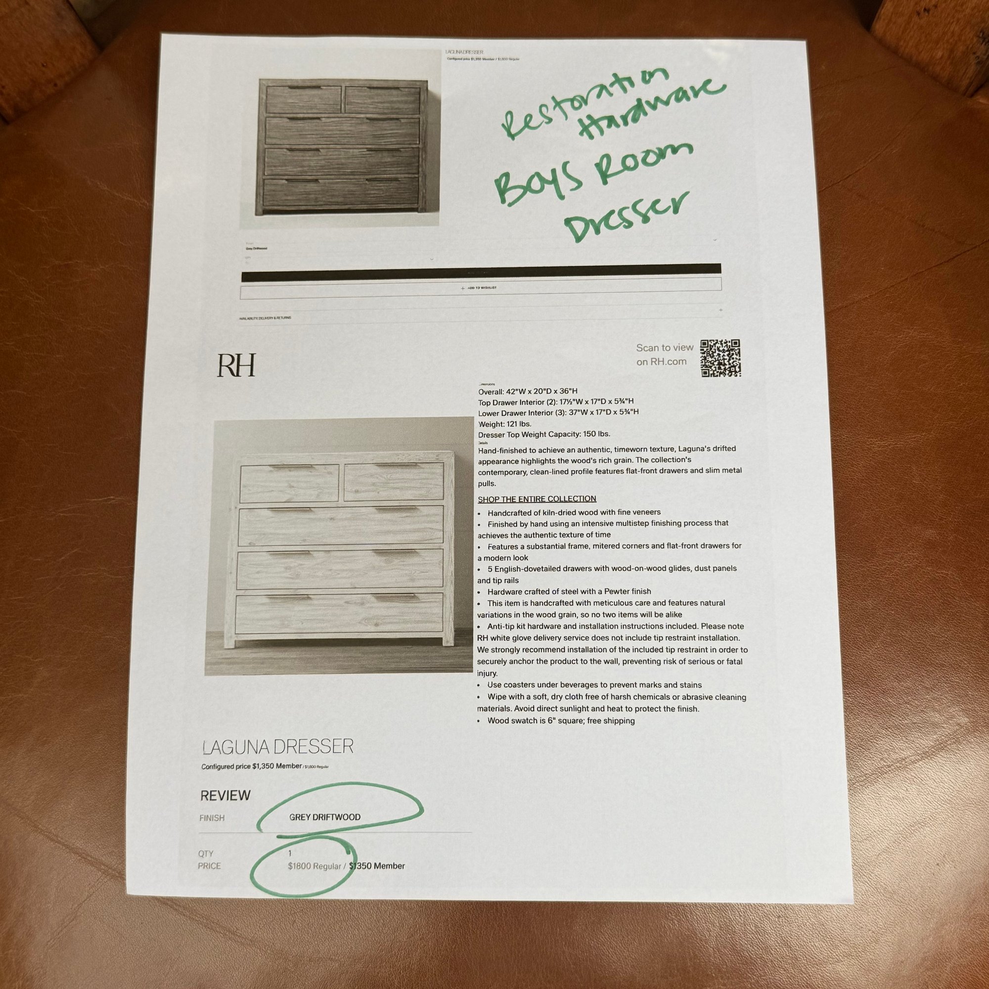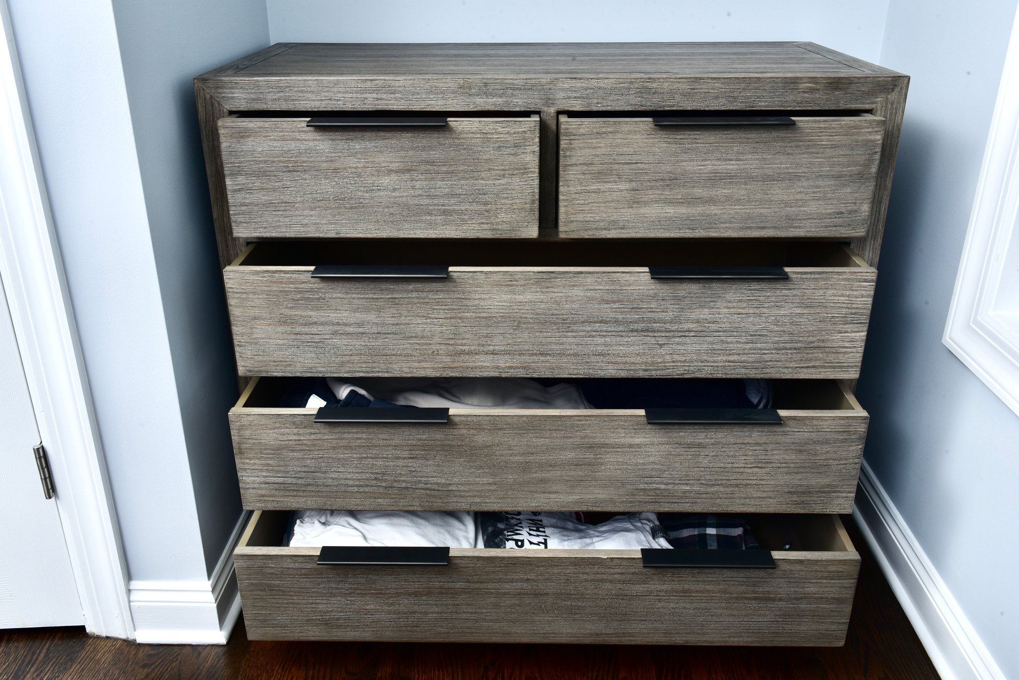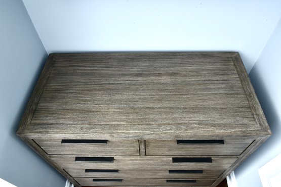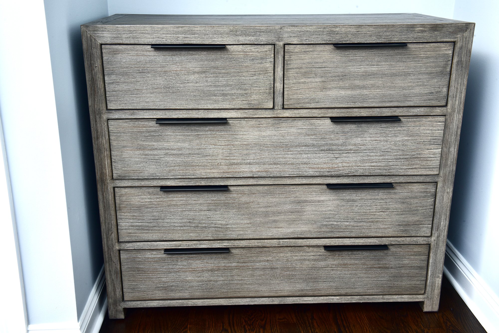 Hand-finished to achieve an authentic, timeworn texture, Laguna's drifted appearance highlights the wood's rich grain. The Laguna dresser features a contemporary, clean-lined profile with flat-front drawers and slim metal pulls.