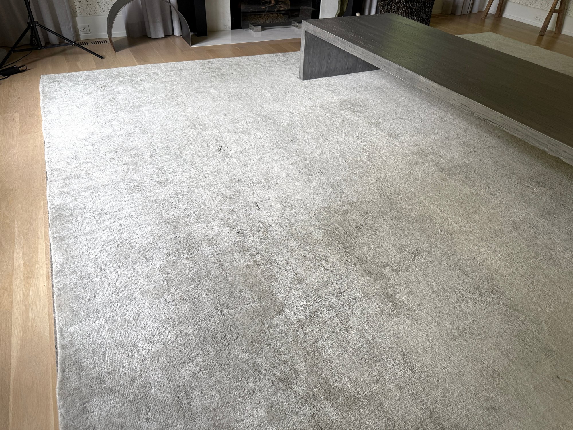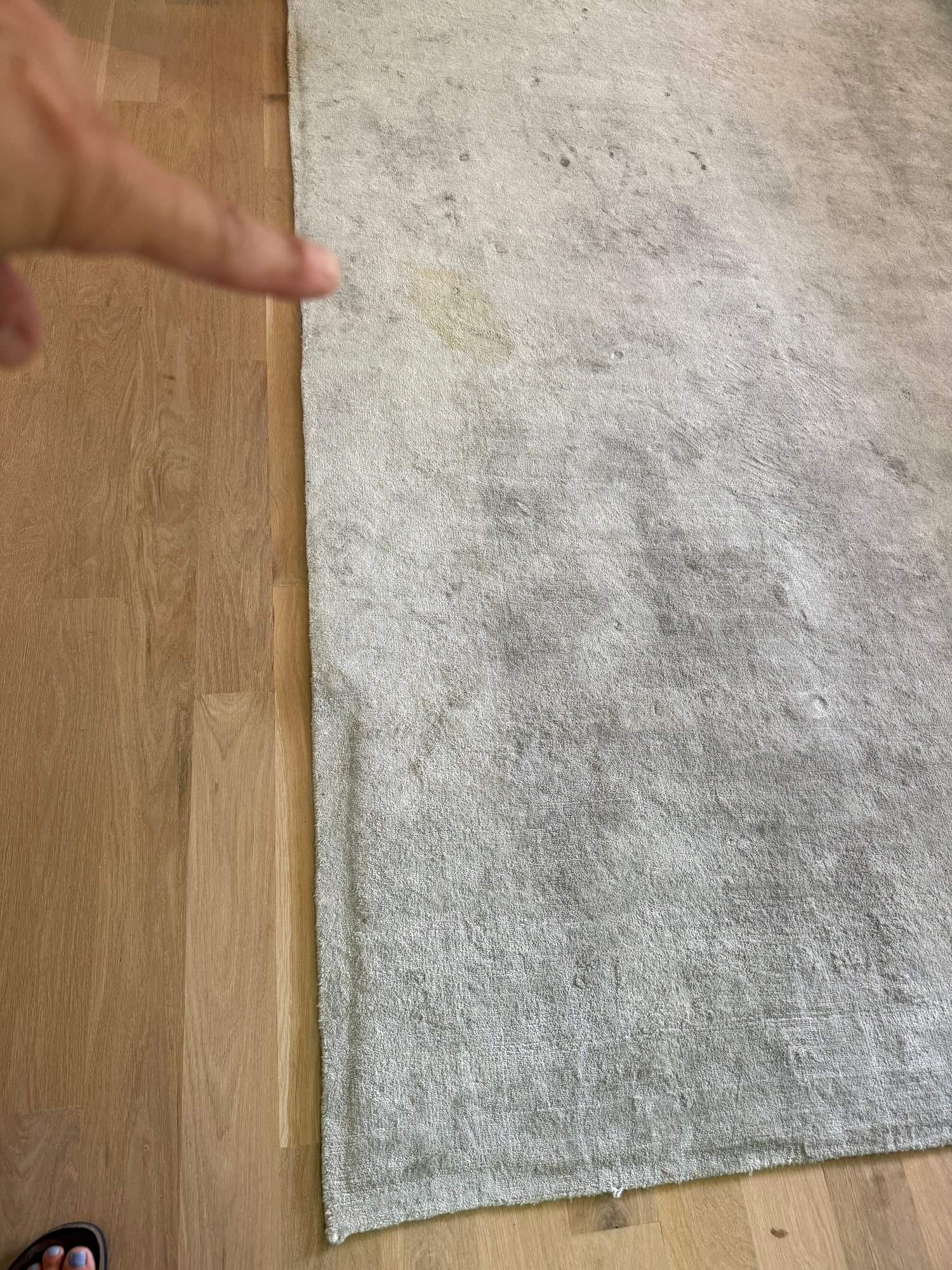 A few stains( see photo)- they are on one side so furniture placement could help.