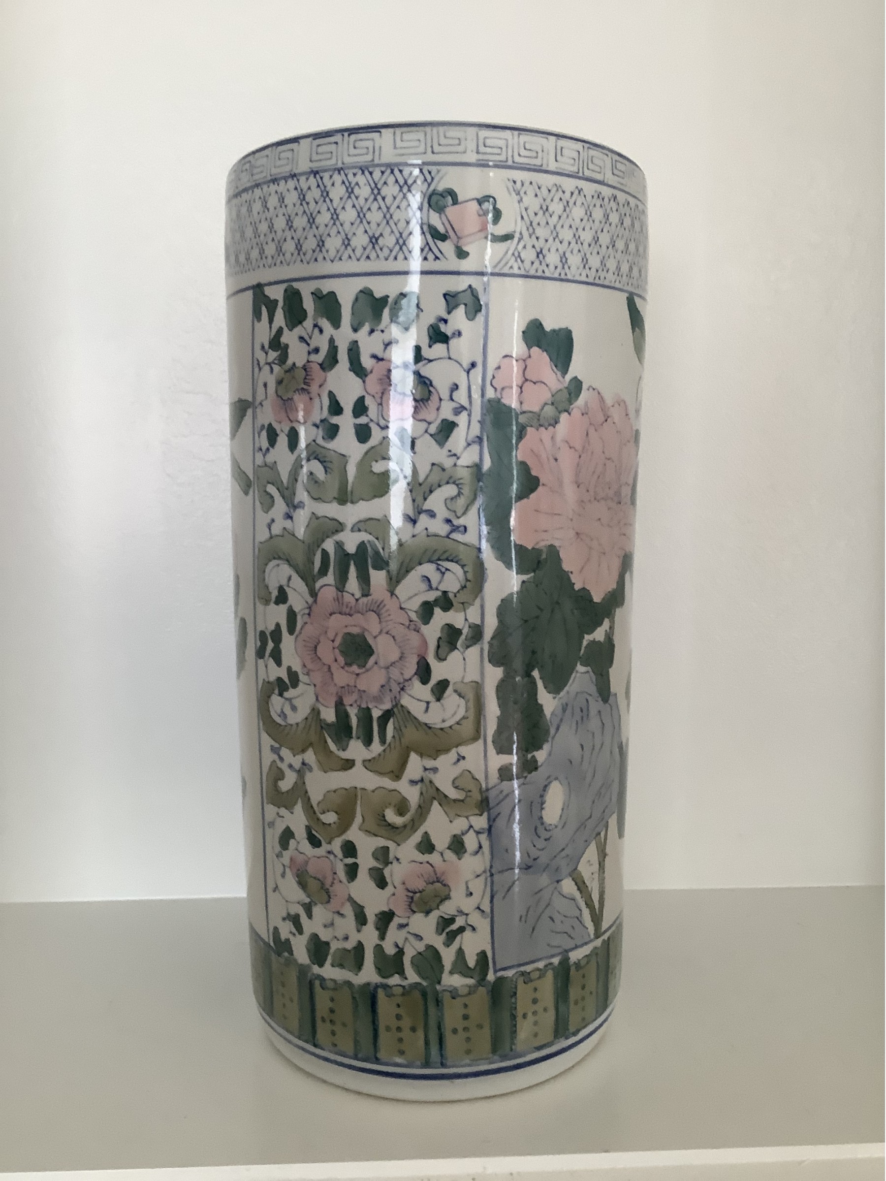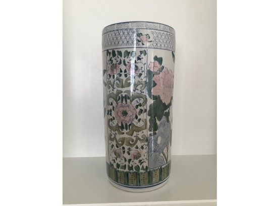 Pretty Blue Pink Green On Cream Ceramic Vase