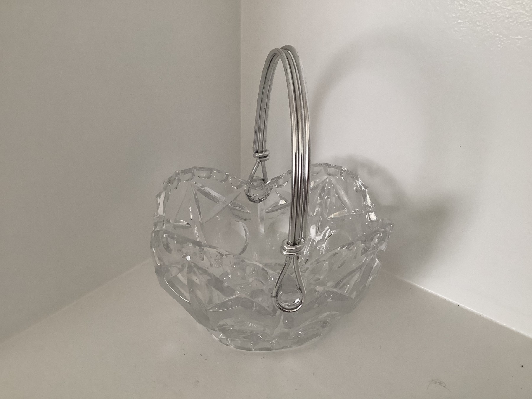 Pretty Crystal Basket Wood Silver Handle