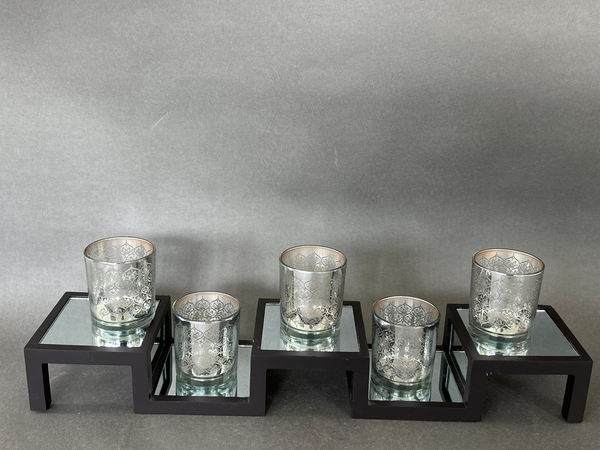 A pretty mirror that has mirrors on the bottom that really reflect the candle light even more