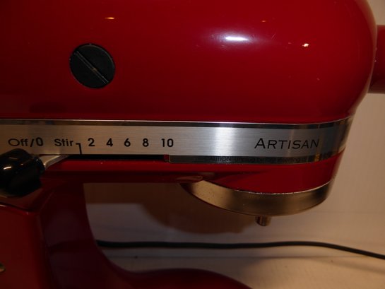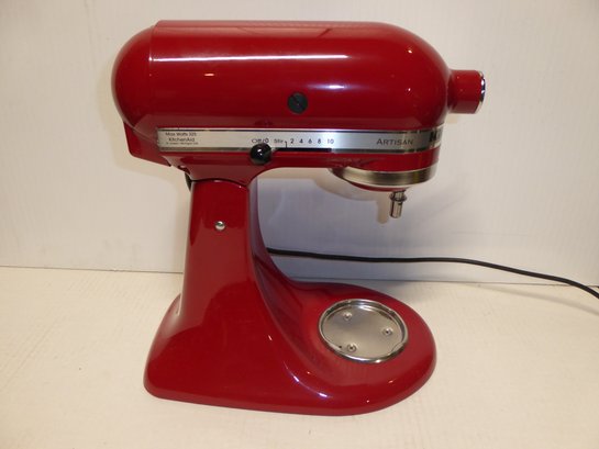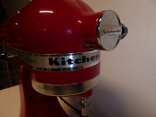 Pristine Kitchen Aid Red Mixer With Attachments And Box