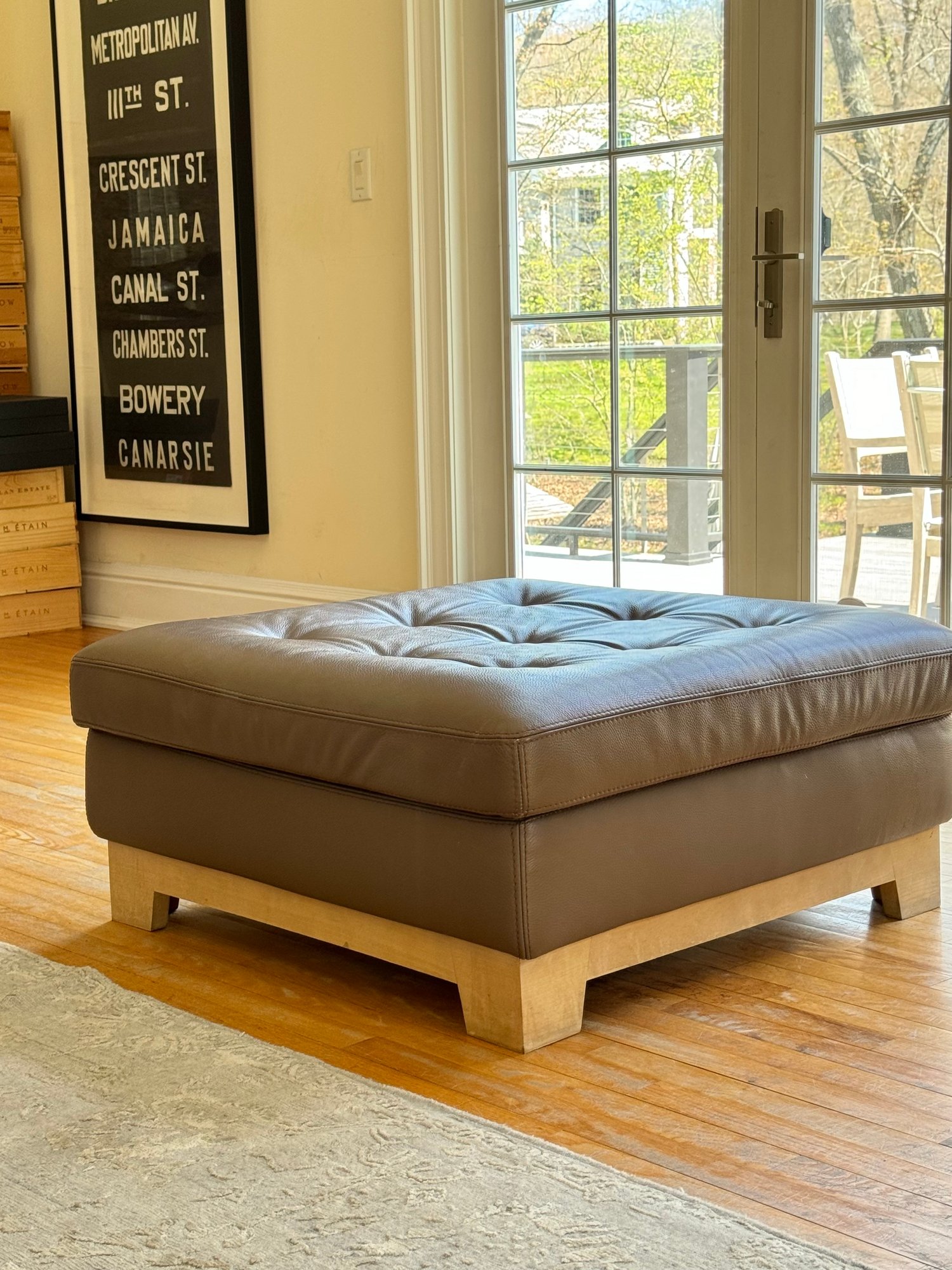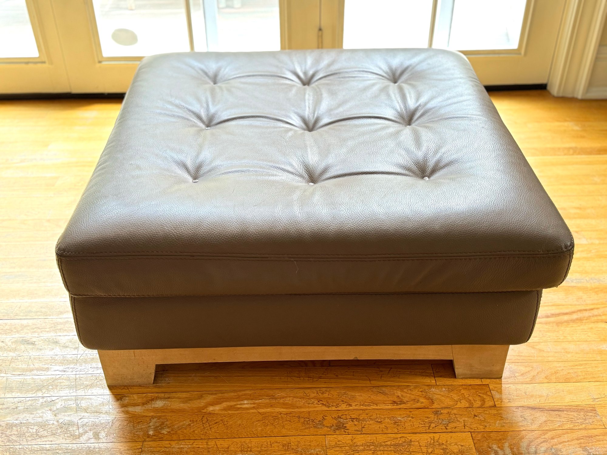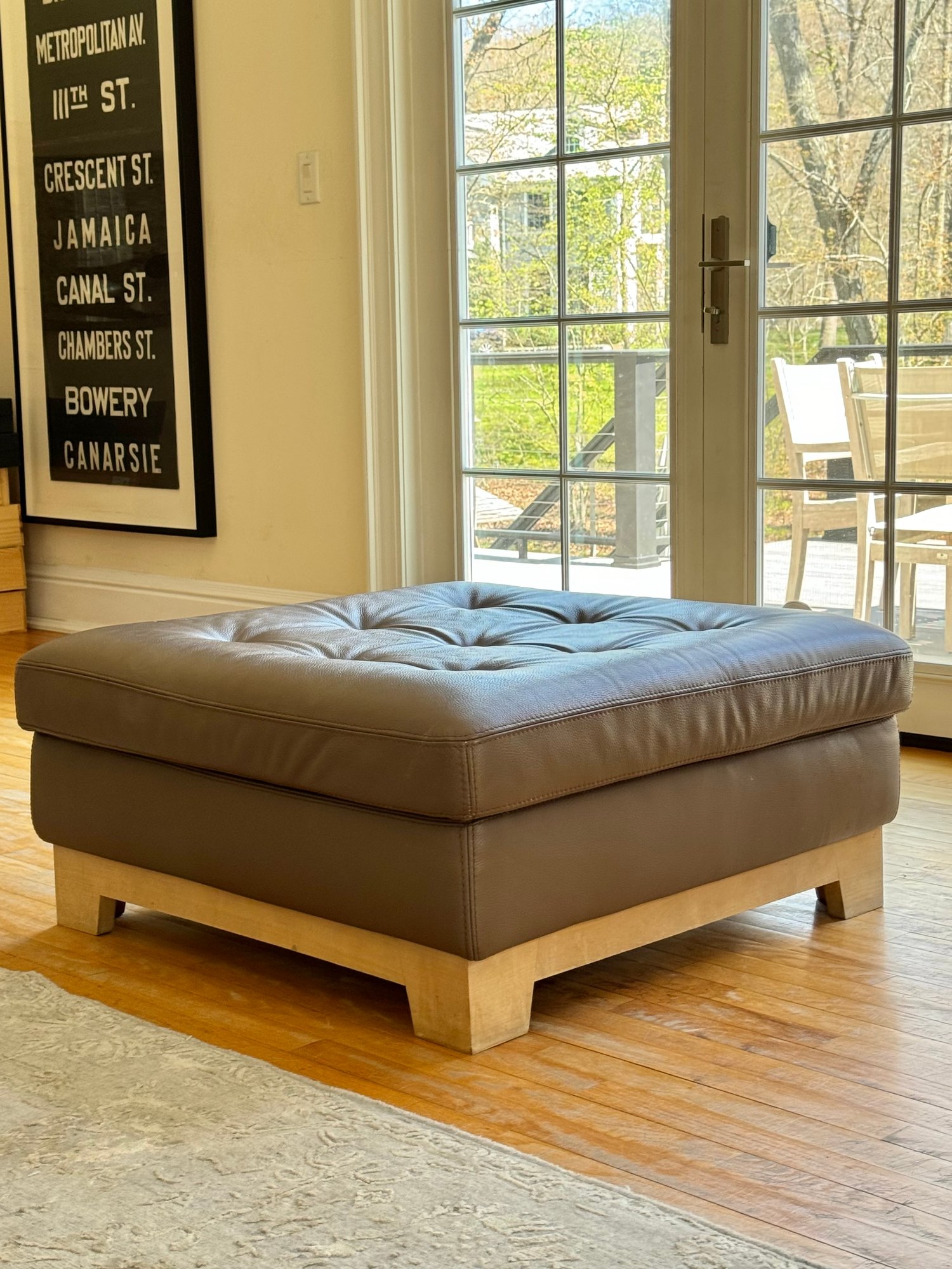 Super soft and very elegant Roche Bobois leather tufted ottoman in a neutral