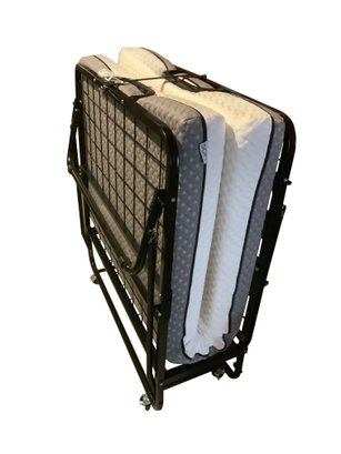 Newer rollaway bed in excellent condition, was only used a couple of times. Better quality memory foam mattress by Certi-Pur US with zip off cover is in excellent shape. No stains or damage. Frame has metal strap to secure closed and wheels for easy movement.