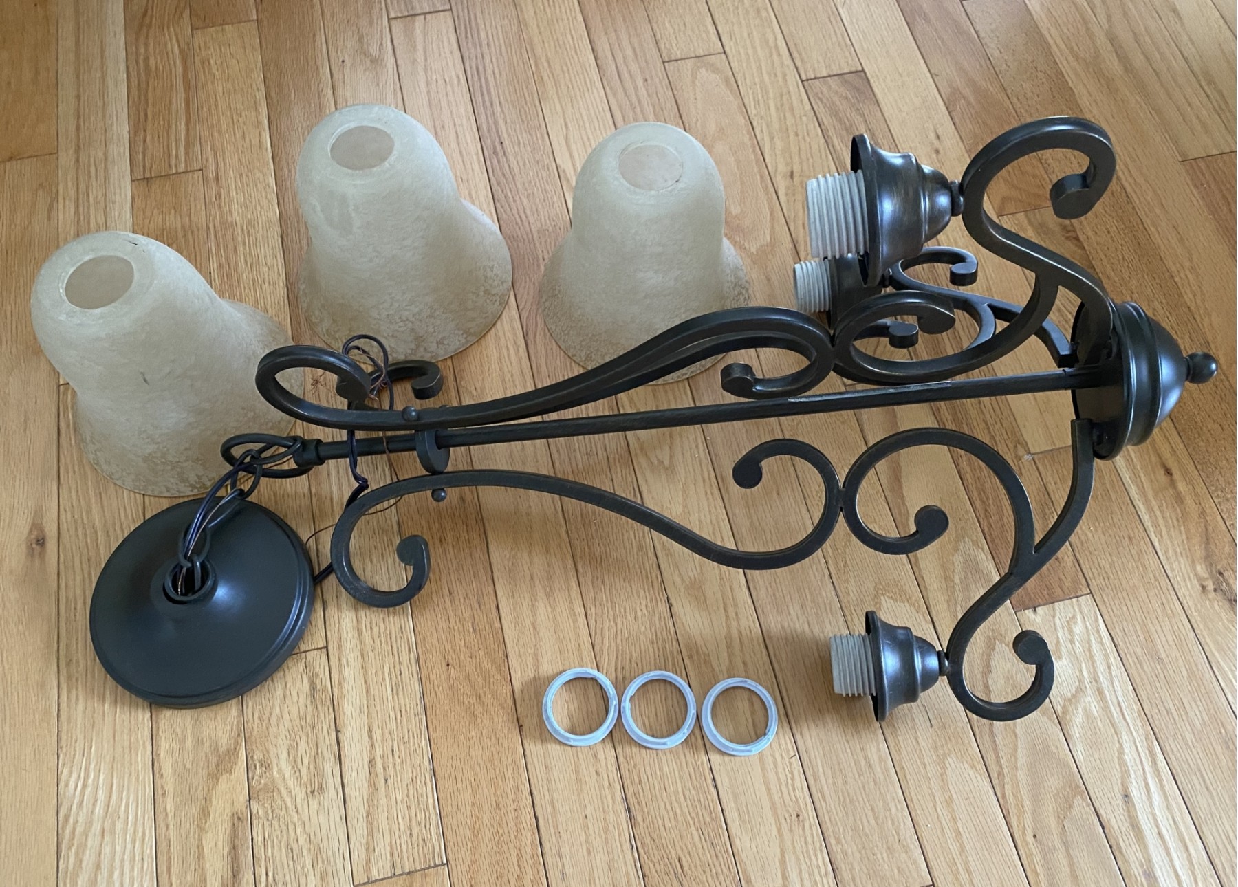 3 shades ready to be hardwired pendant 23" plus chain. Kishler