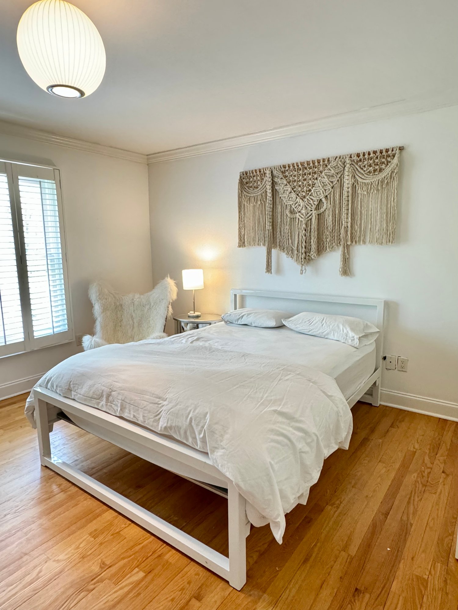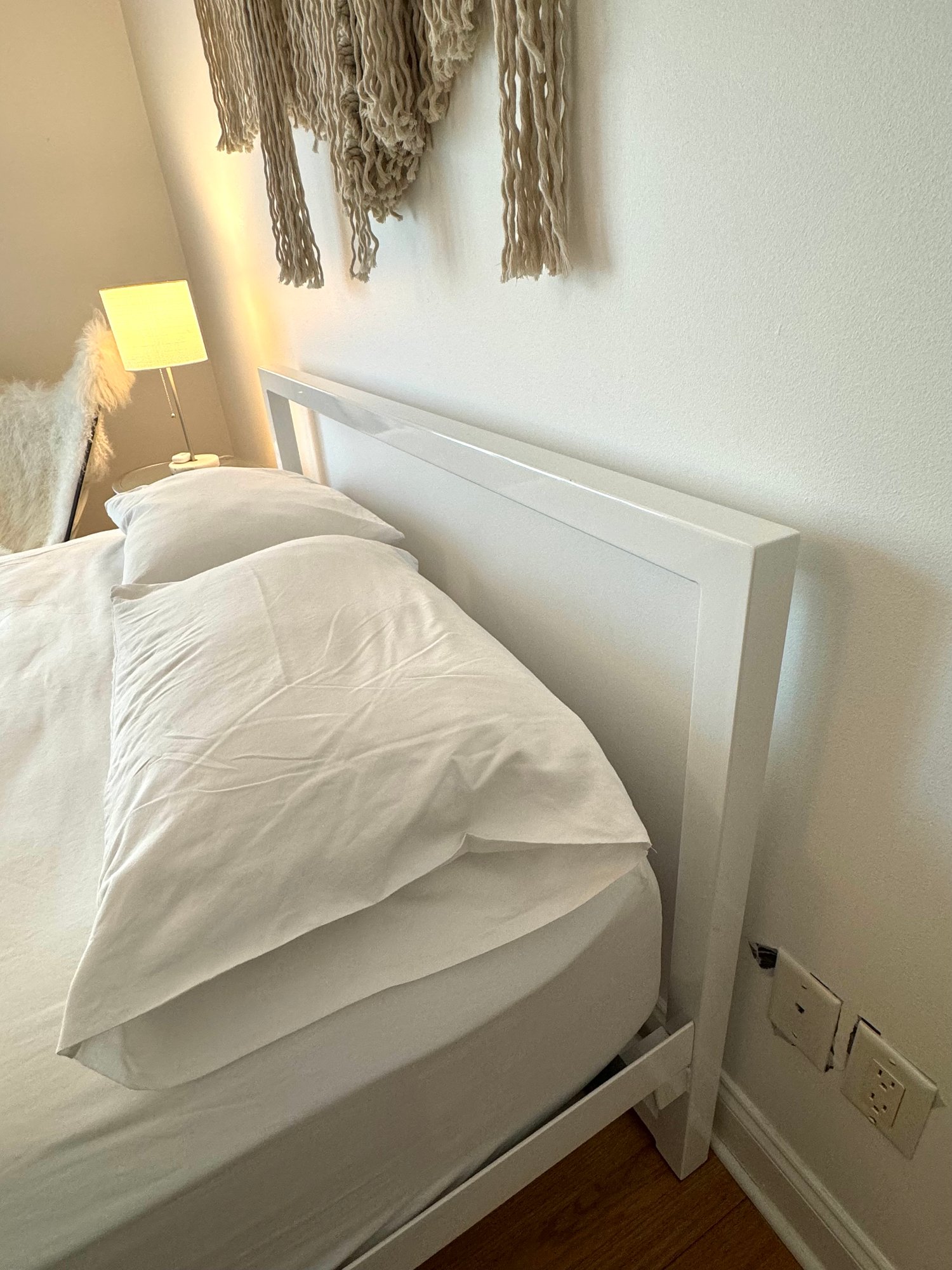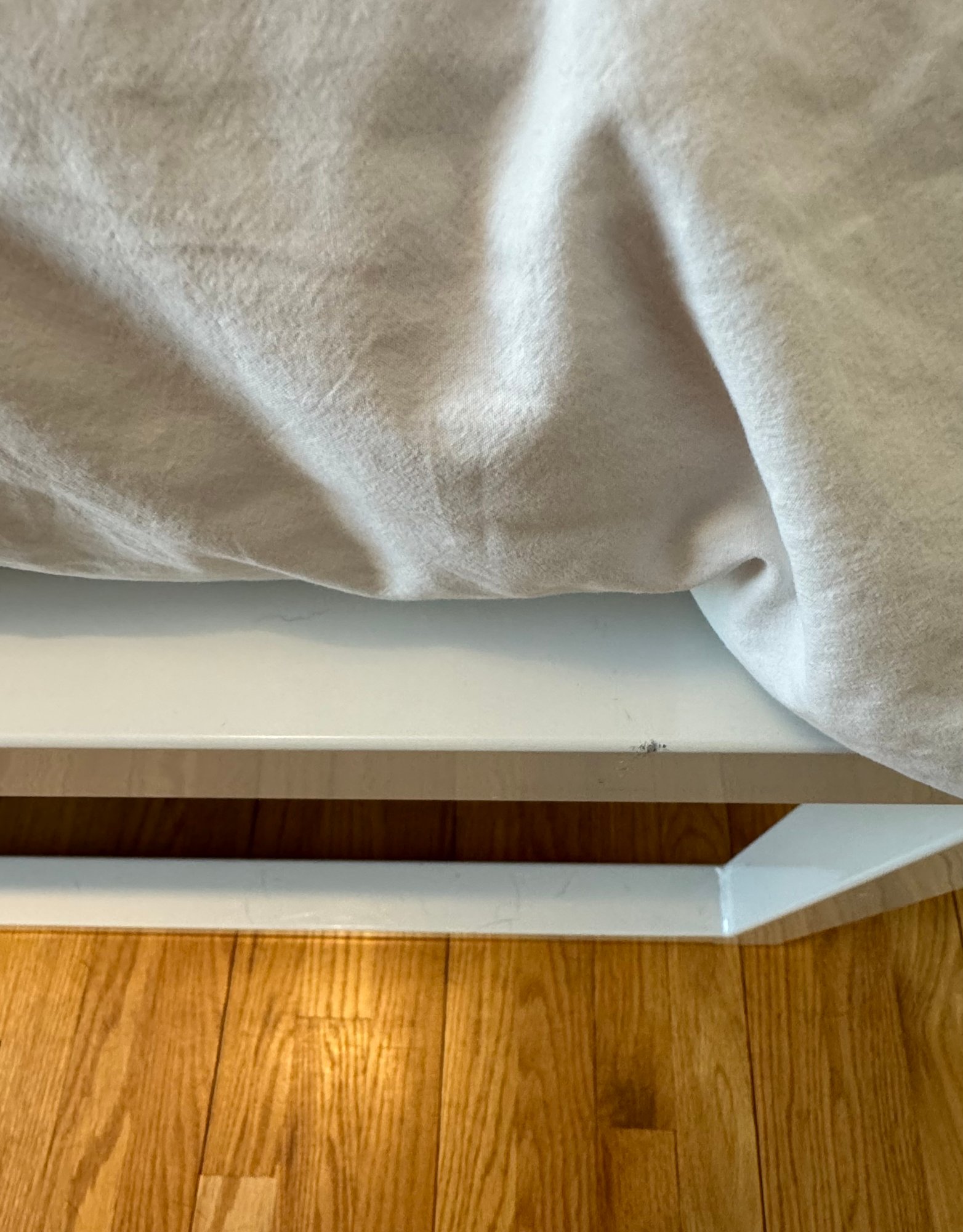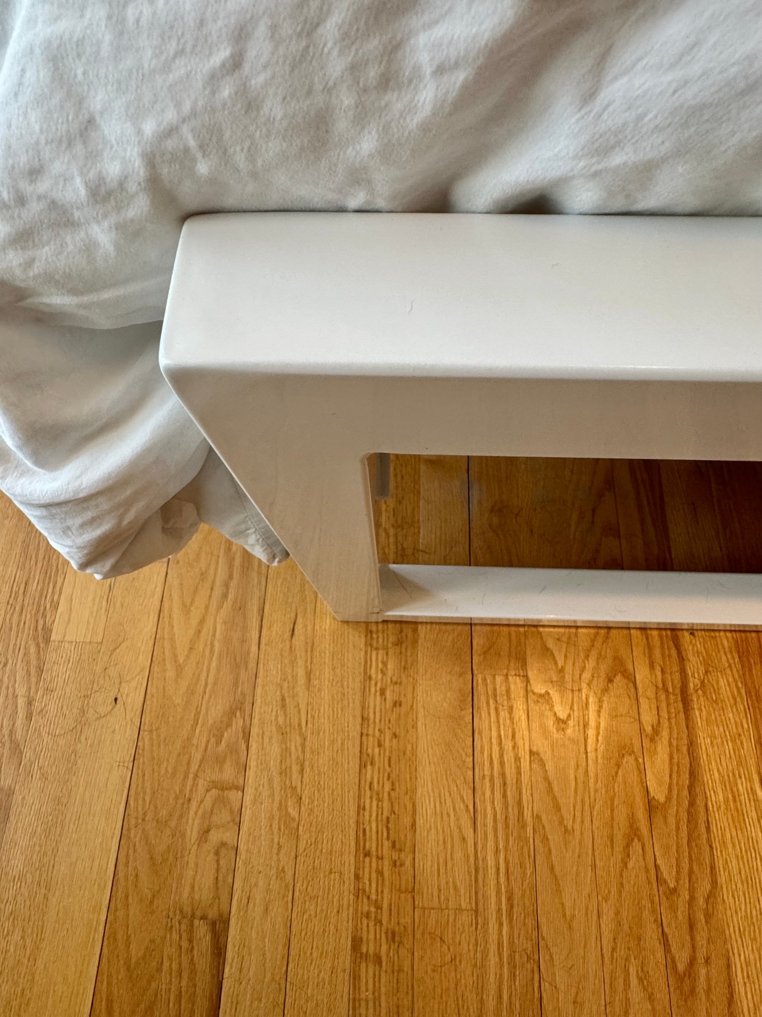 Room & Board platform style metal bed in white metal finish.