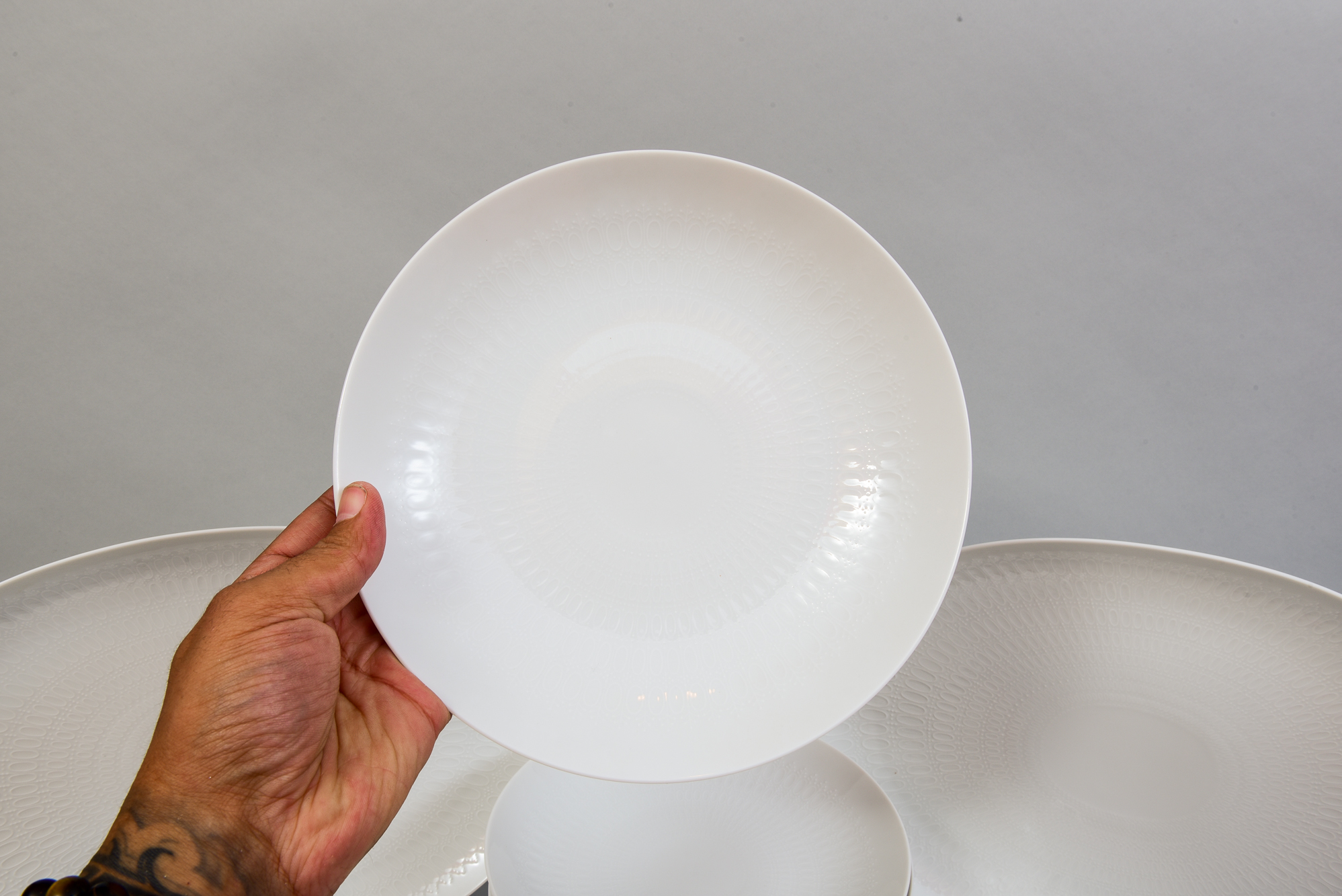 - Two serving bowls measuring 8 1/2"Diam. x 4"H