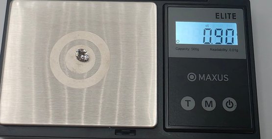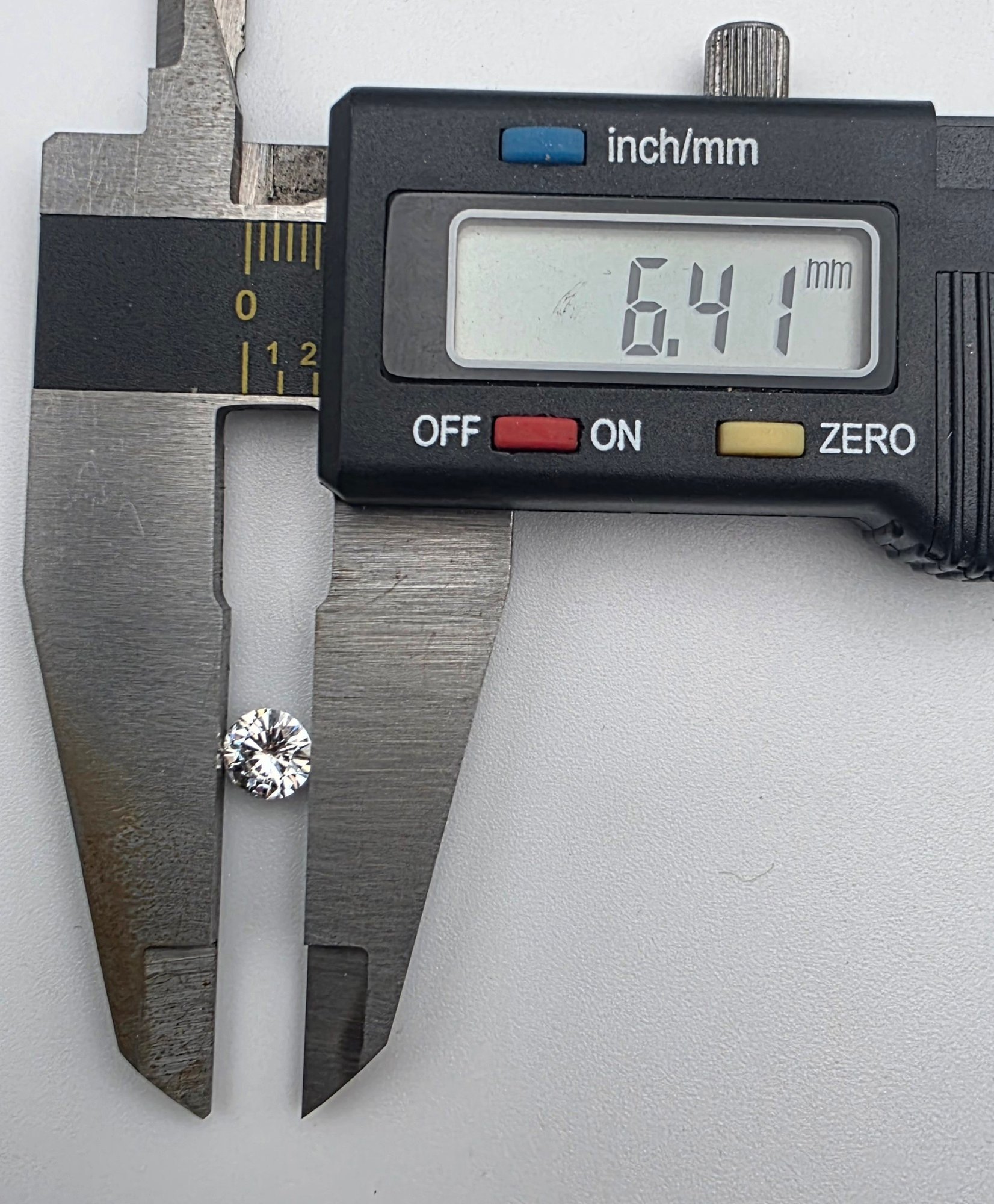 This is a beautiful 0.90 carat loose diamond featuring a classic round brilliant cut. This stone has been verified by digital scale and caliper measurements, showing a 6.41mm diameter, which gives it the impressive visual footprint of a full 1-carat stone.
