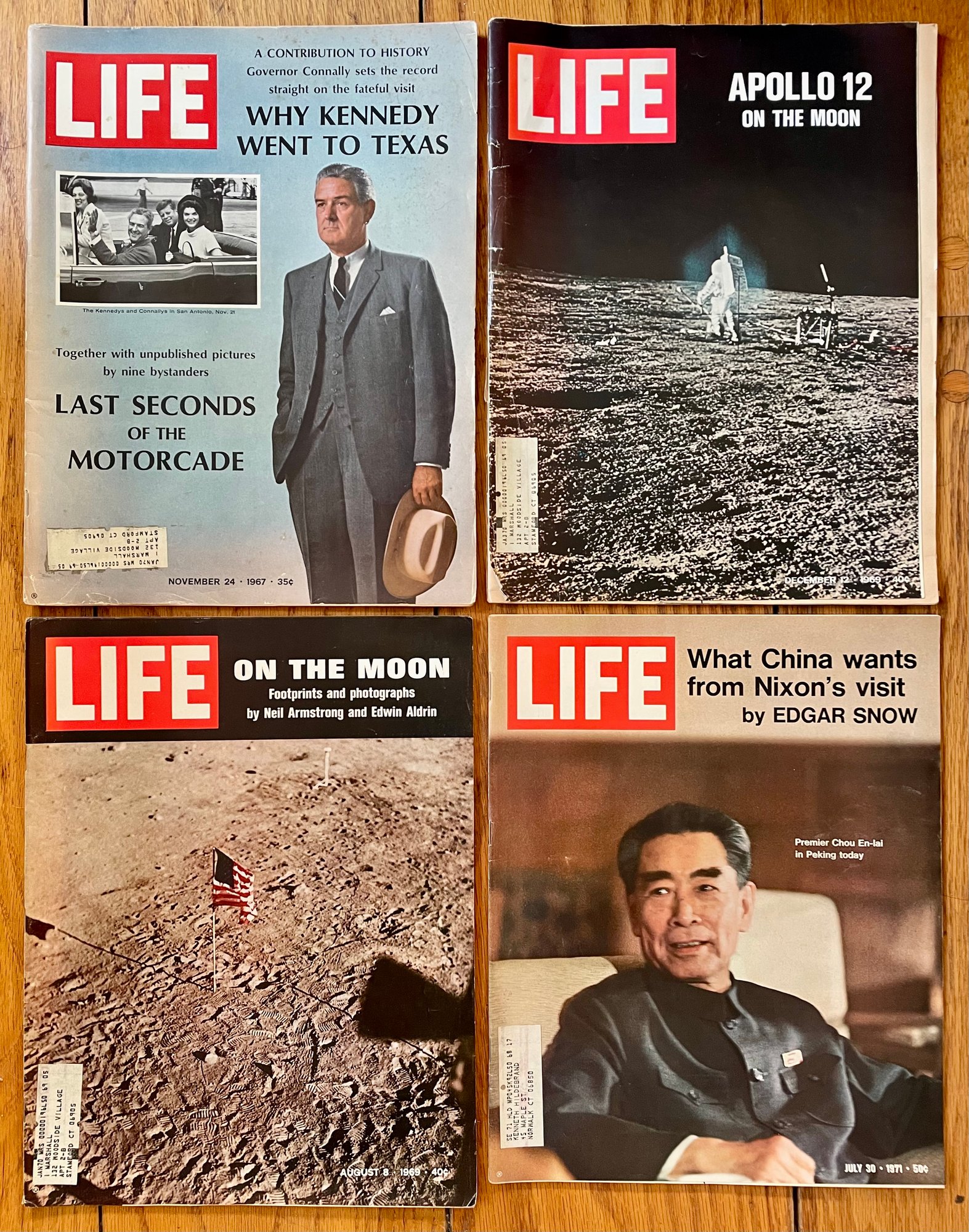 Alway fun and interesting to read. A trip to the past with super photos and ads. They are in good condition overall but the Apollo 12 issue has a few inch rip also the spine - see last photo.