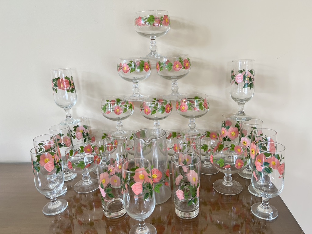 1 pitcher,4 glasses,10 stem glasses, 12 deserts