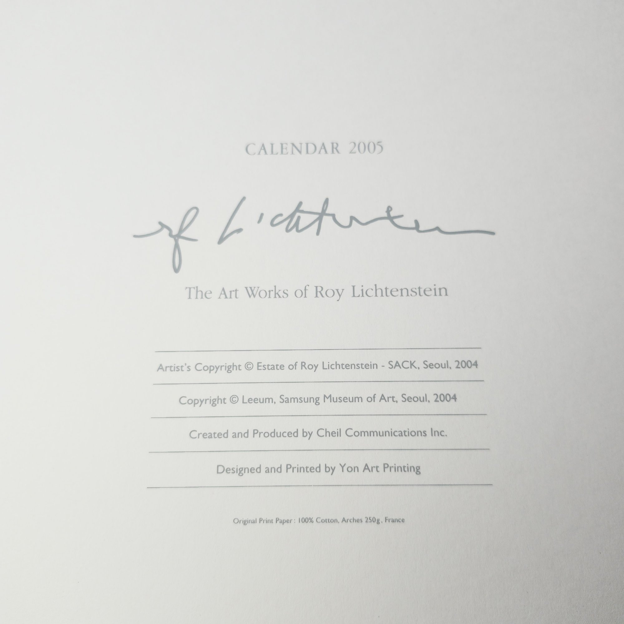 Fantastic 2005 calendar of Roy Lichtenstein prints on high quality Arches paper.