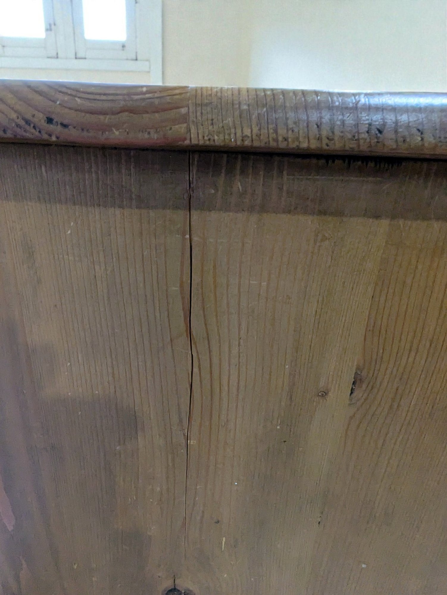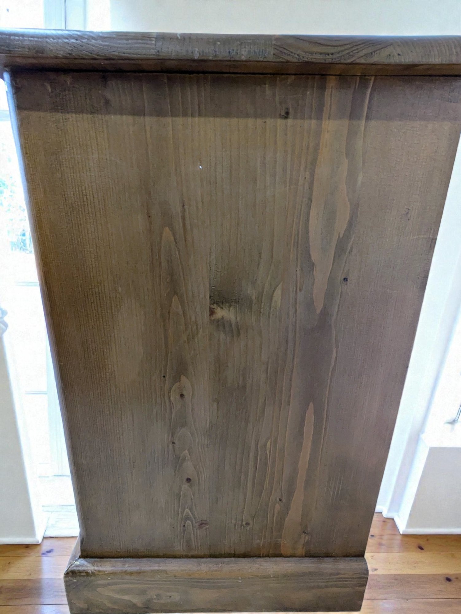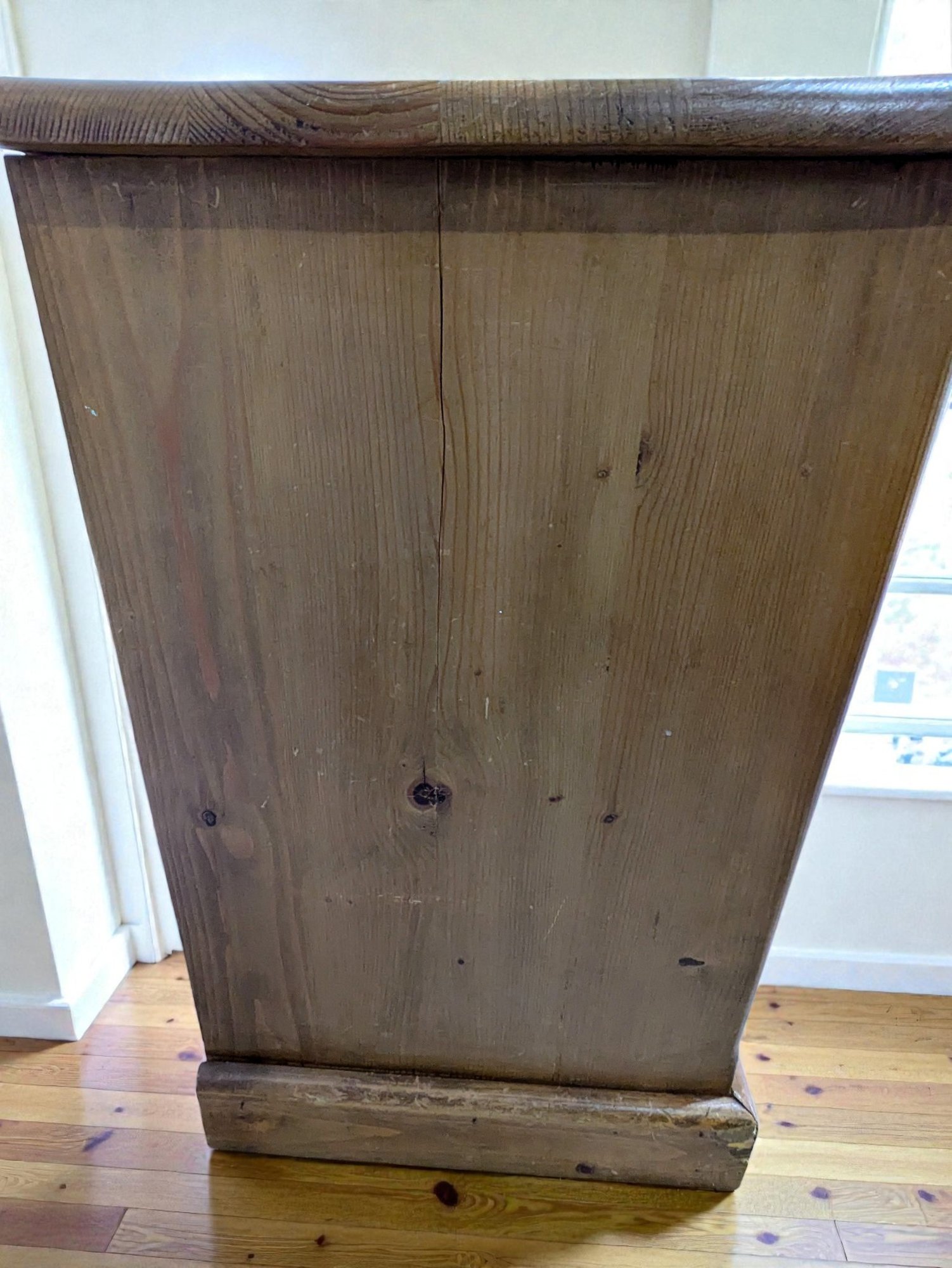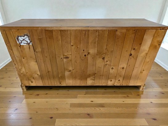 Features 9 Drawers and 3 Pull-Out Shelves. Crafted of Solid Pine with a Matte Finish and Wood Drawer Pulls. Marks and Wear Consistent with Age and Use. Overall, Very Good Condition. Please see all the photos as part of the description and condition. 61.5"W x 31"H x 18.5"D