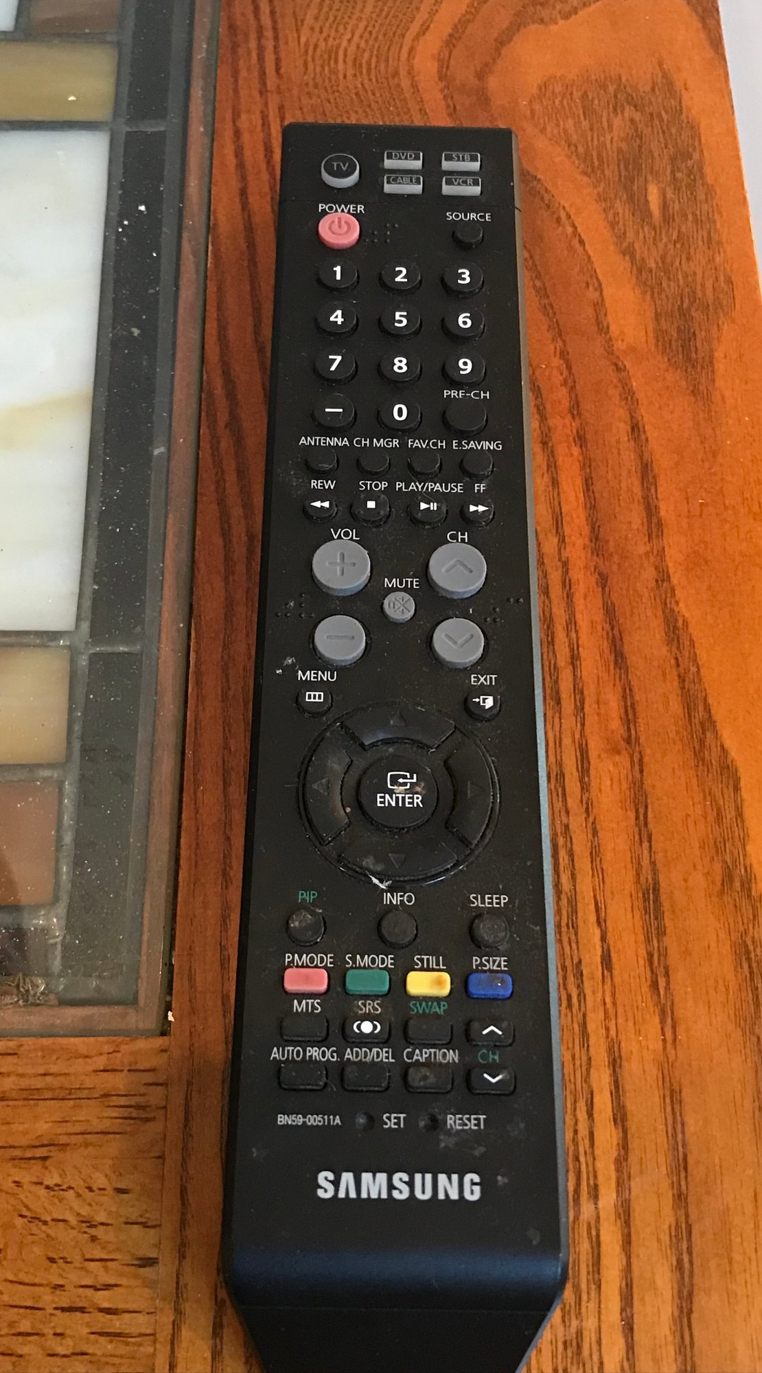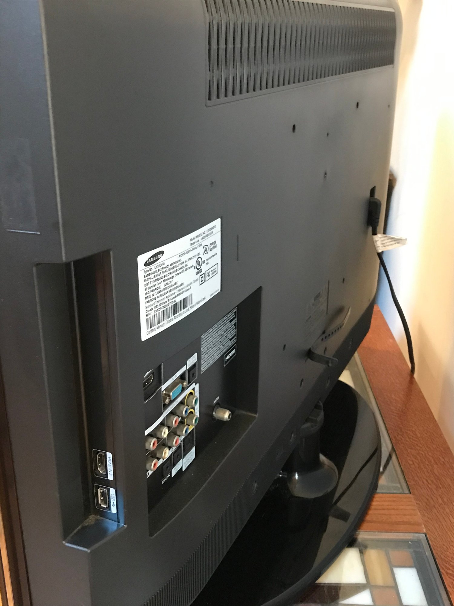 Condition: Tested and powers on successfully (see photos showing the Samsung splash screen and source menu). The screen and bezel show typical signs of use but are in good overall cosmetic condition.