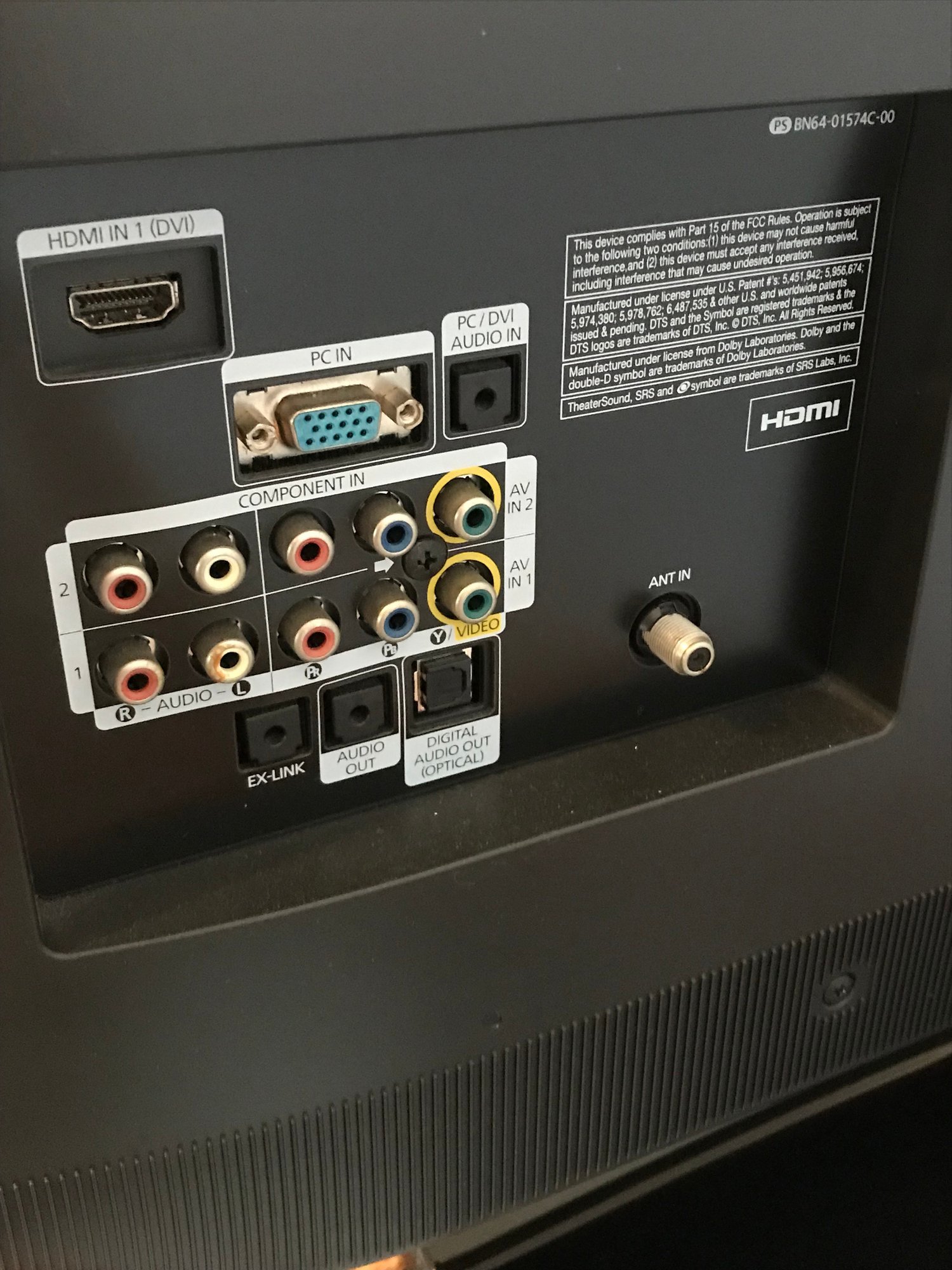 Connectivity: 2 HDMI ports (1 rear, 1 side), 1 USB port, Component/Composite inputs, PC (VGA) input, and Digital Optical Audio Out.