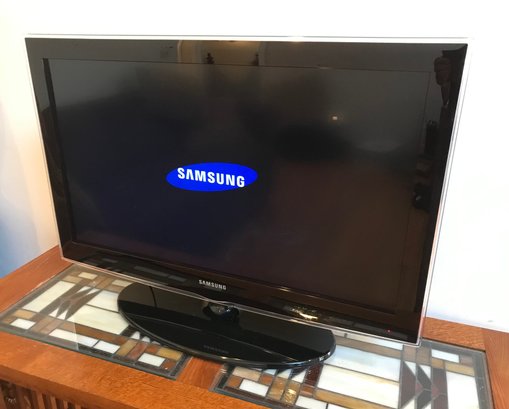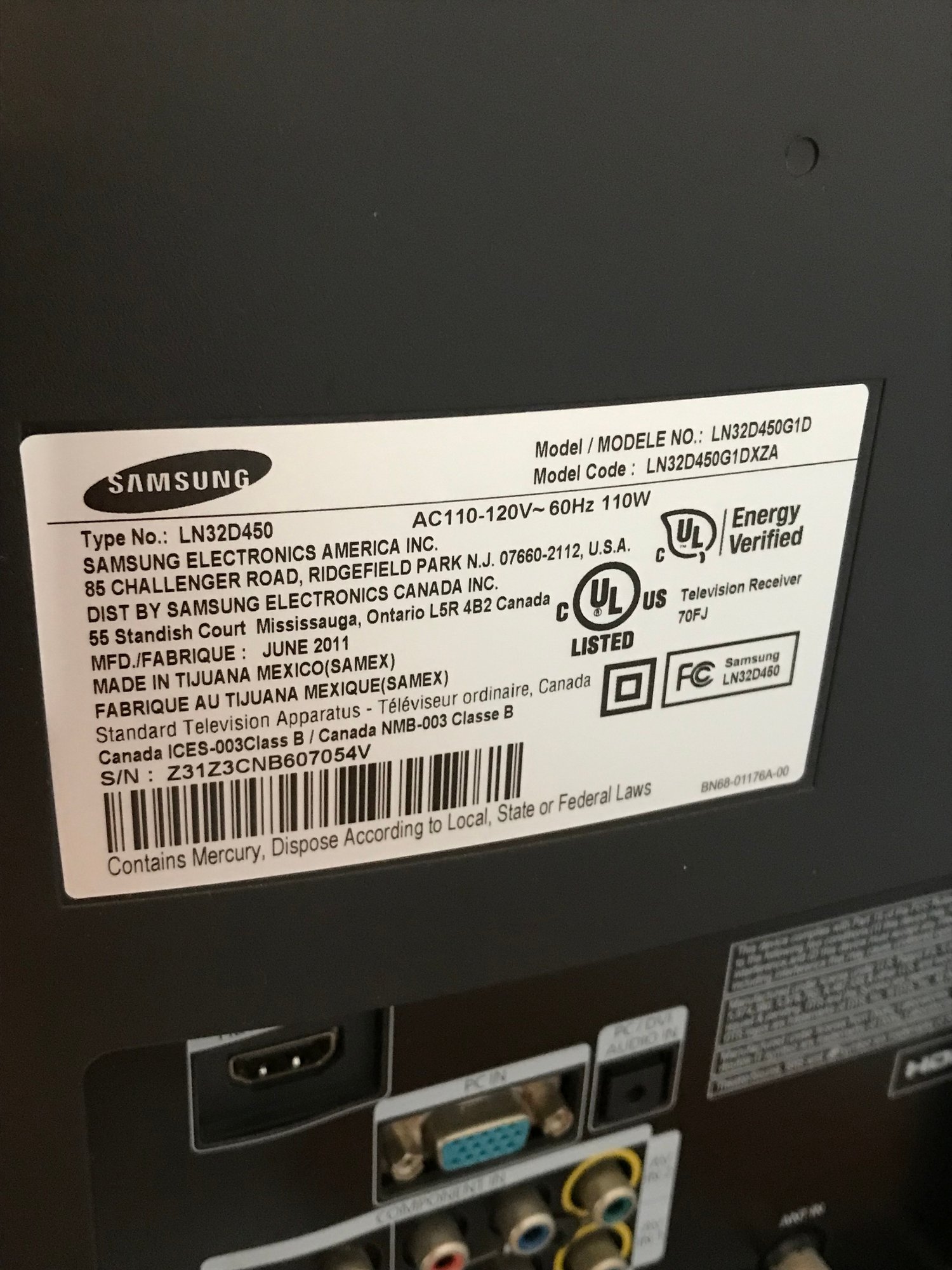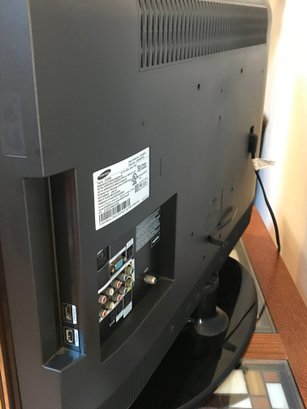 This is a reliable Samsung 32-inch Class (31.5" actual diagonal) television, manufactured in June 2011. It features a sleek black high-gloss finish and comes with the original swivel stand and remote control.