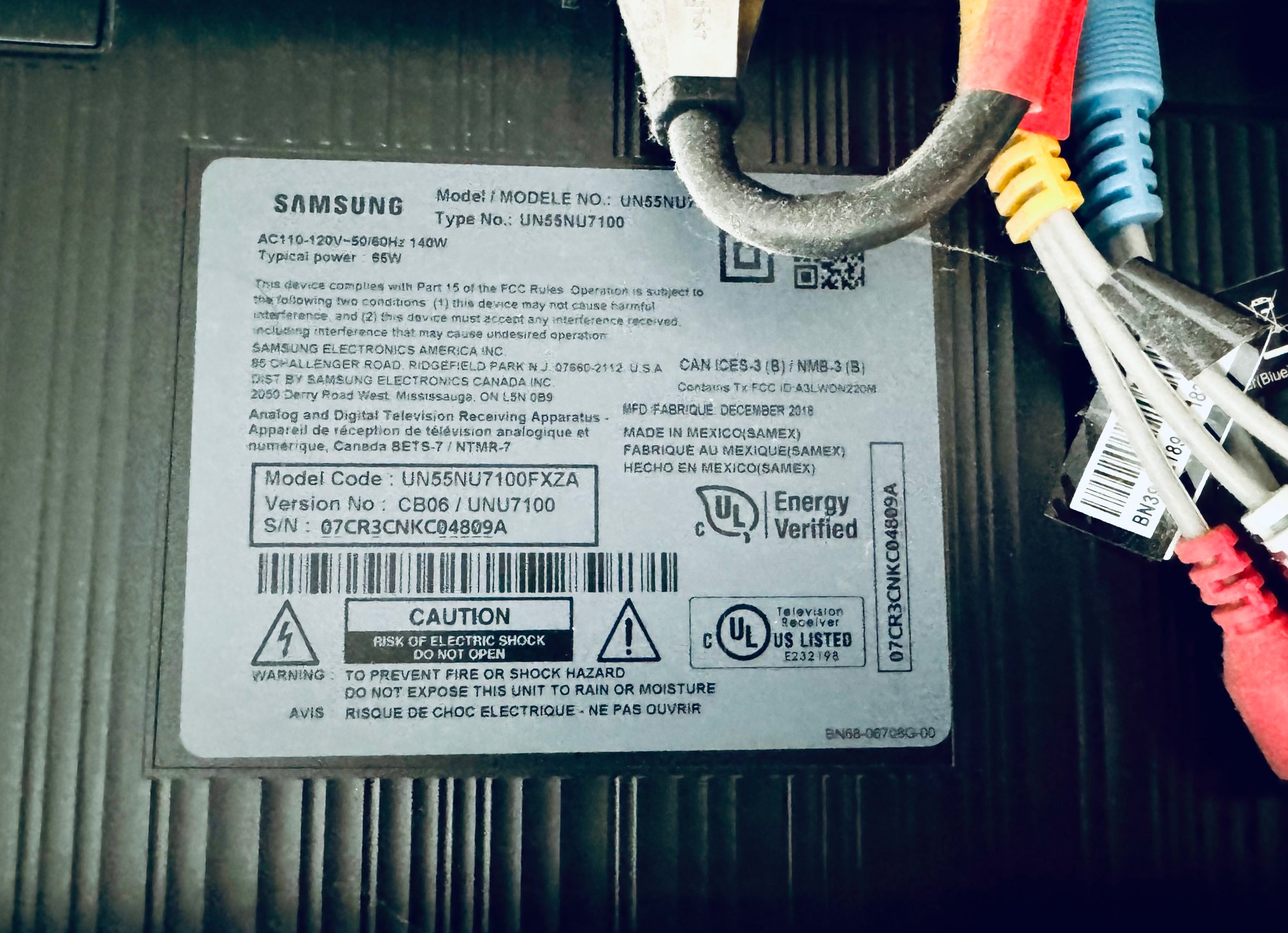 Model #UN55NU7100FXZA