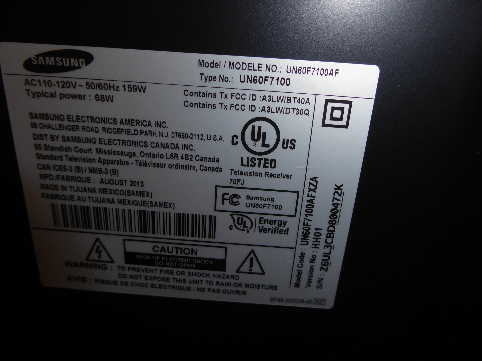 Model UN60F7100AFXZA