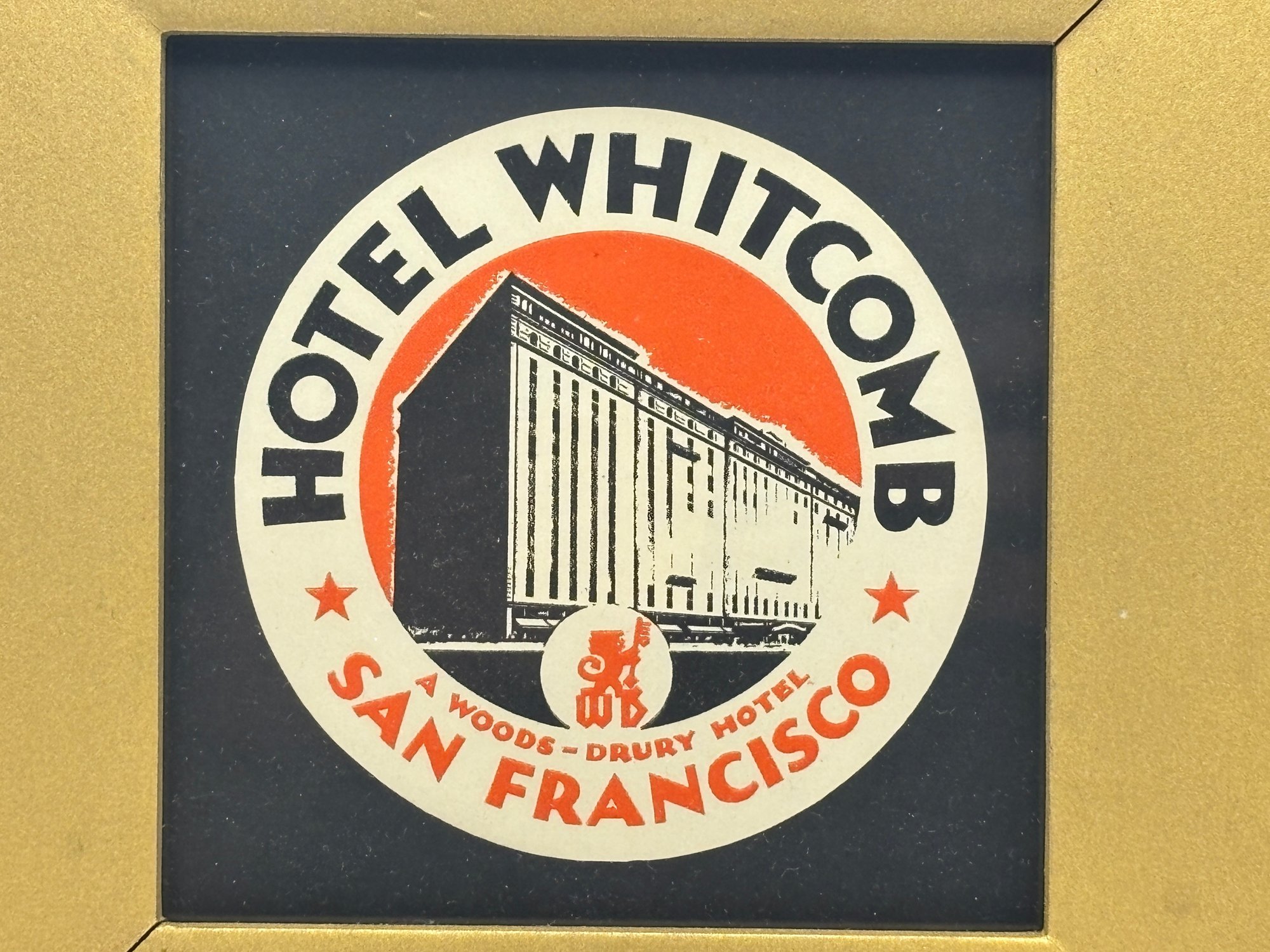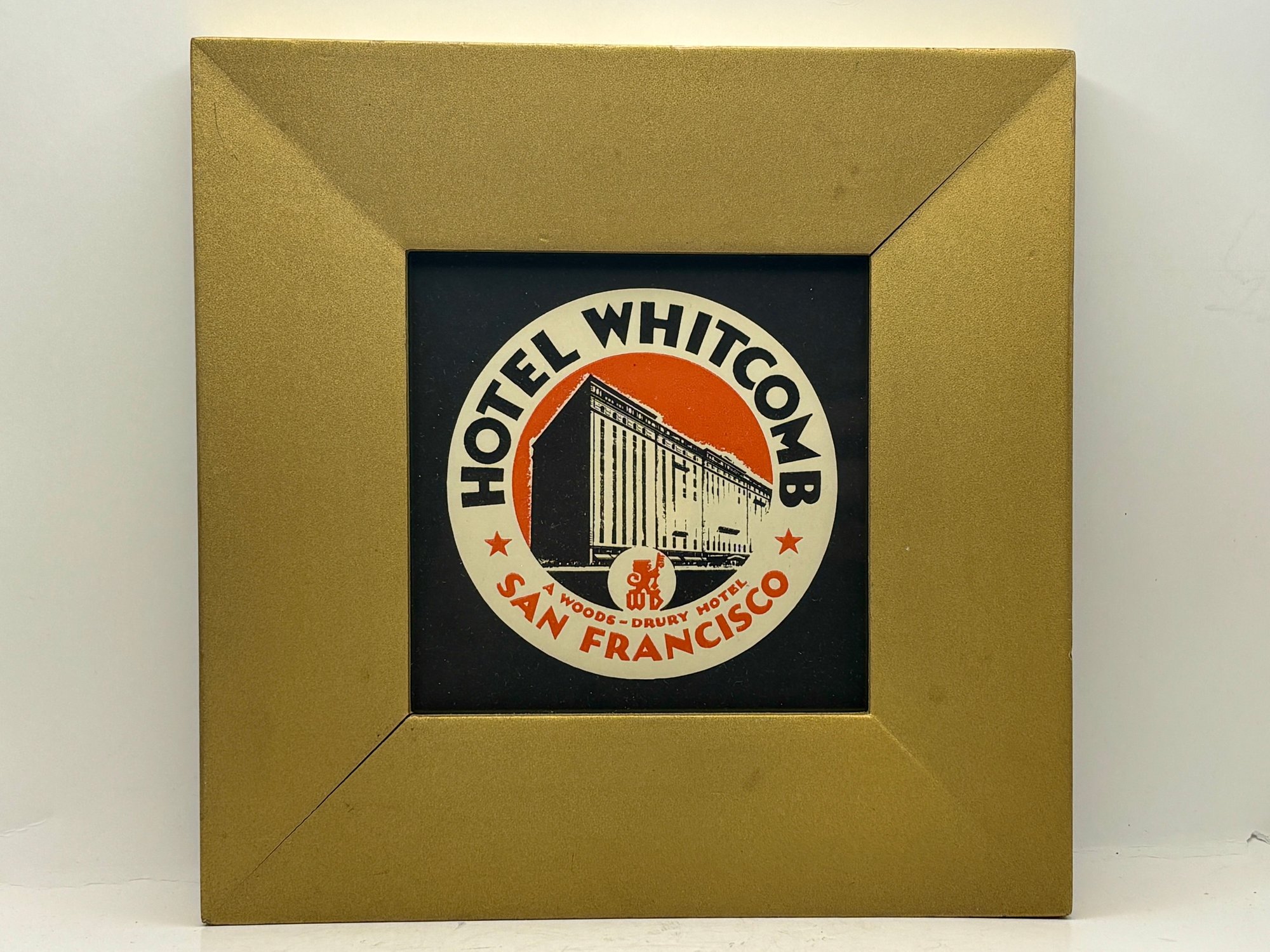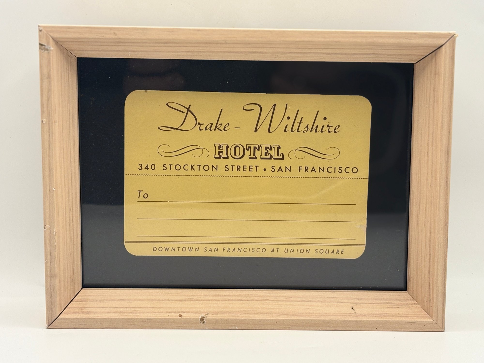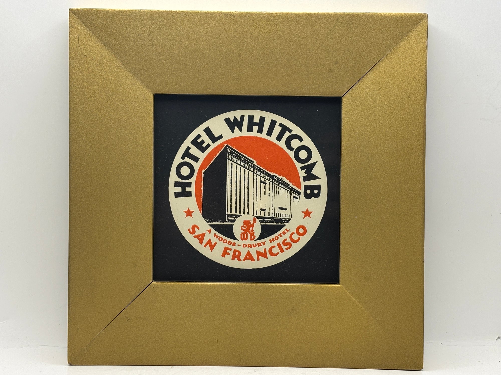 Included in the group are striking examples from the Hotel Whitcomb, the legendary Palace Hotel, and the Drake–Wiltshire Hotel, all prominent destinations in San Francisco’s historic downtown hotel scene. The trio offers a wonderful mix of styles: a circular architectural graphic, a richly illustrated doorman scene, and an elegant typographic label with graceful script.