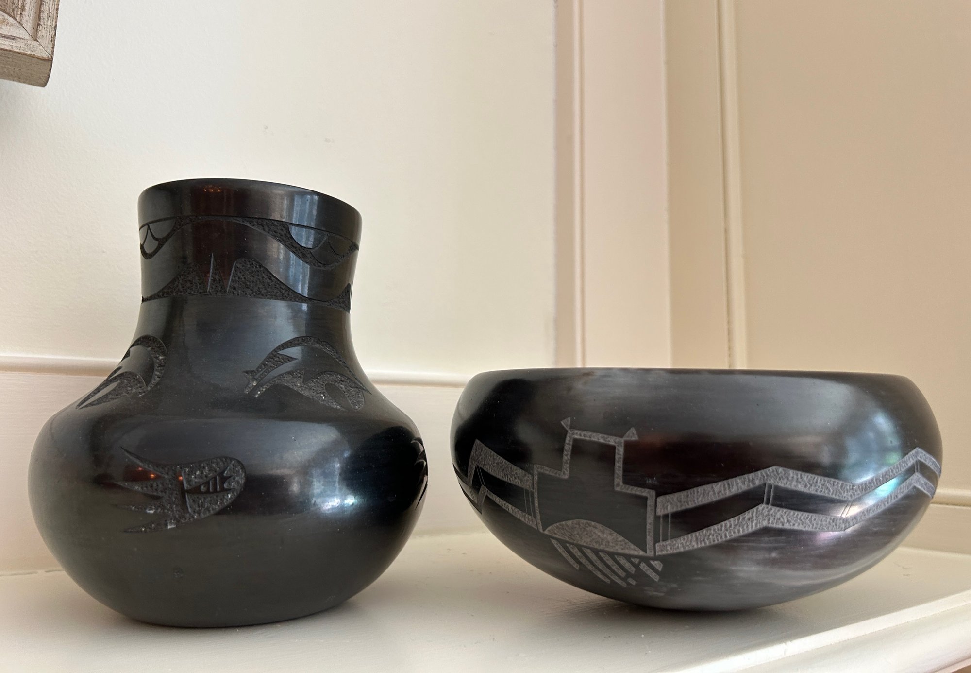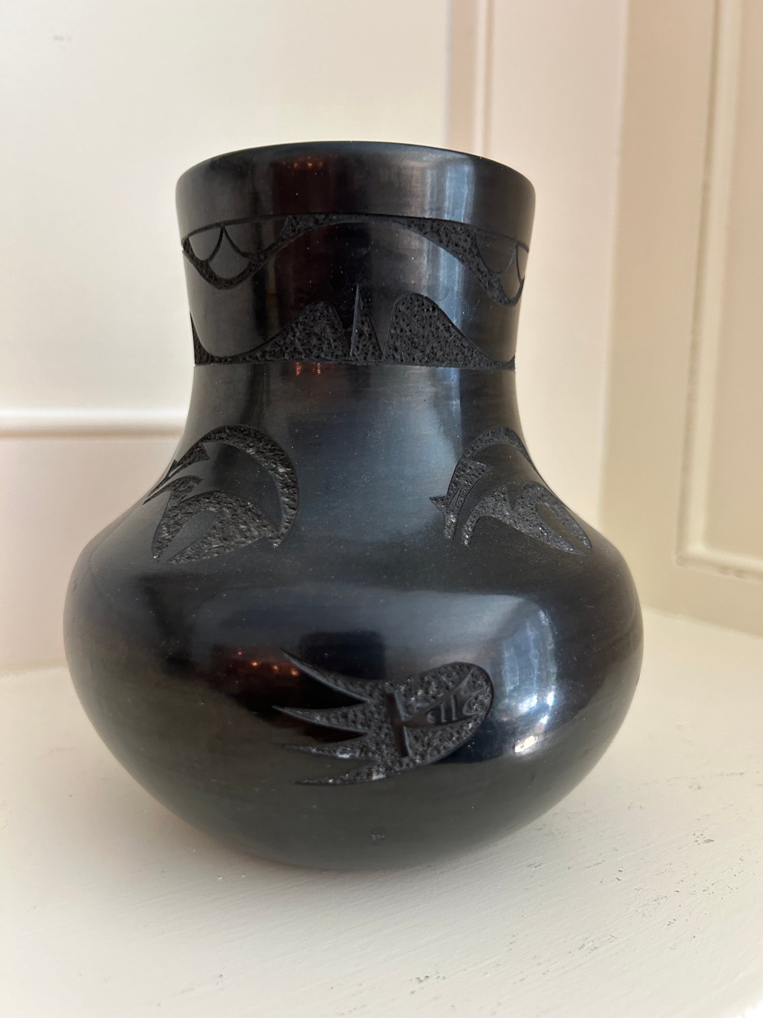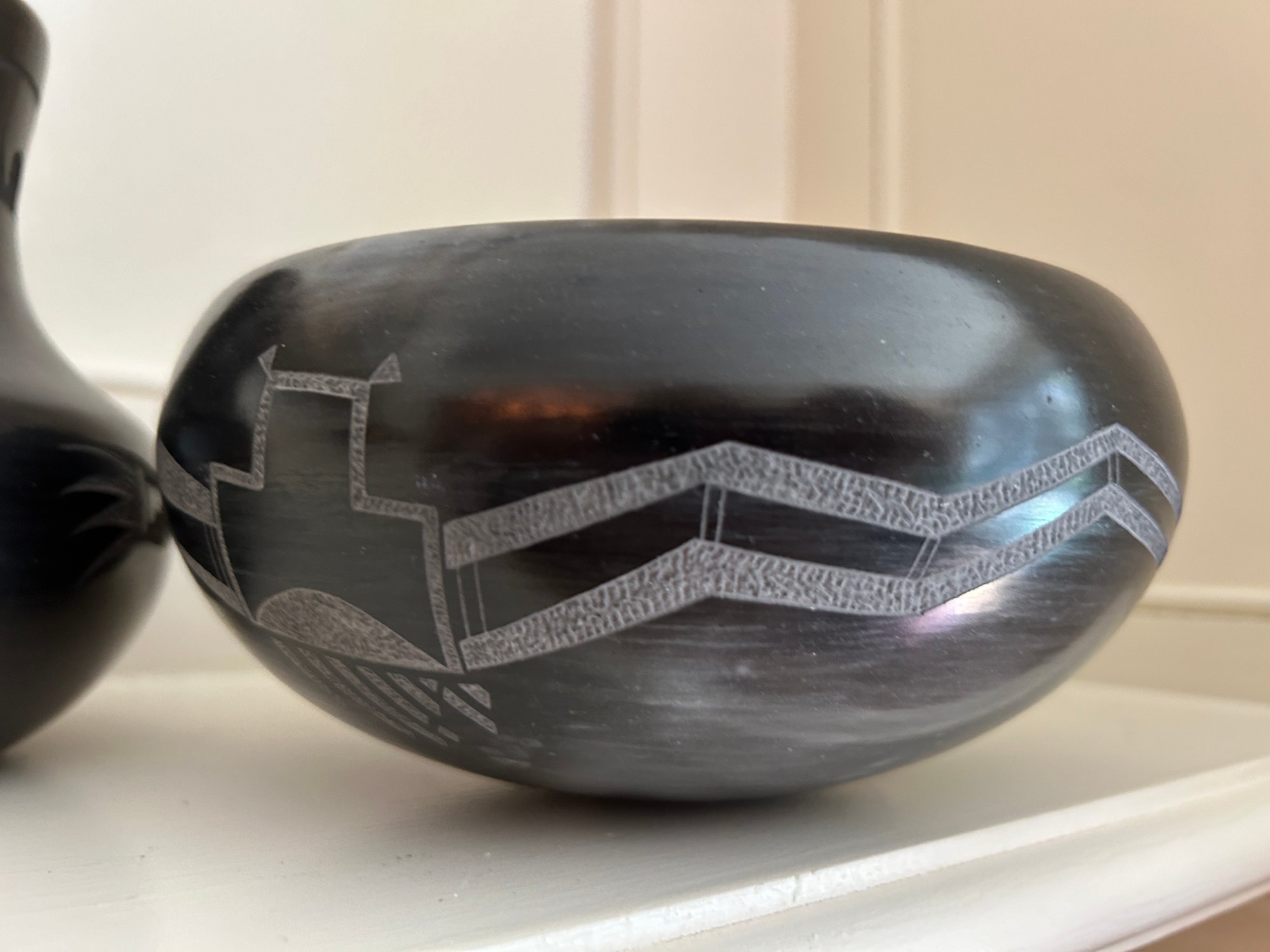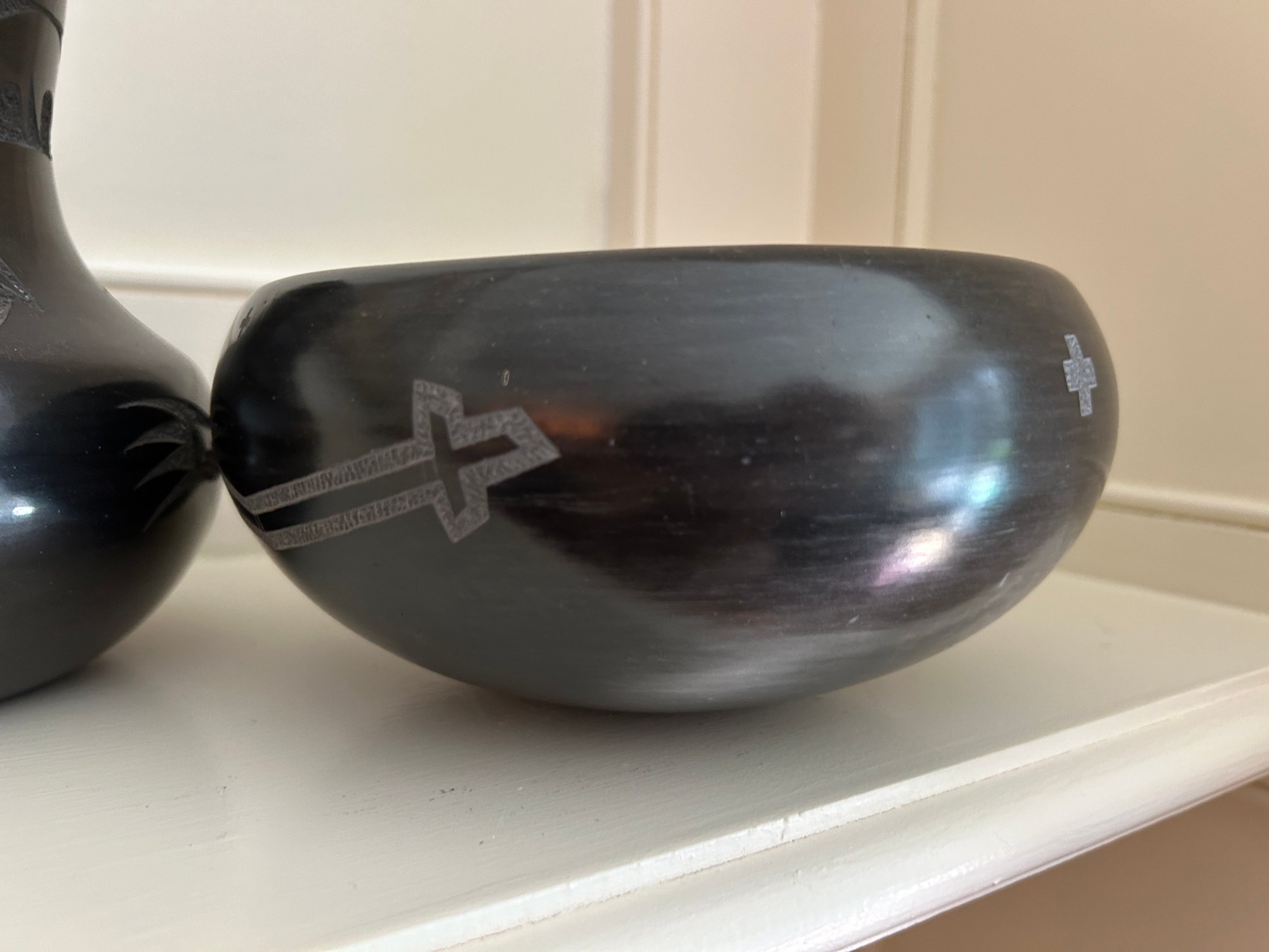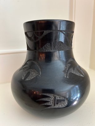 Taller piece signed- 4.5" x 5.5" H 3" at opening