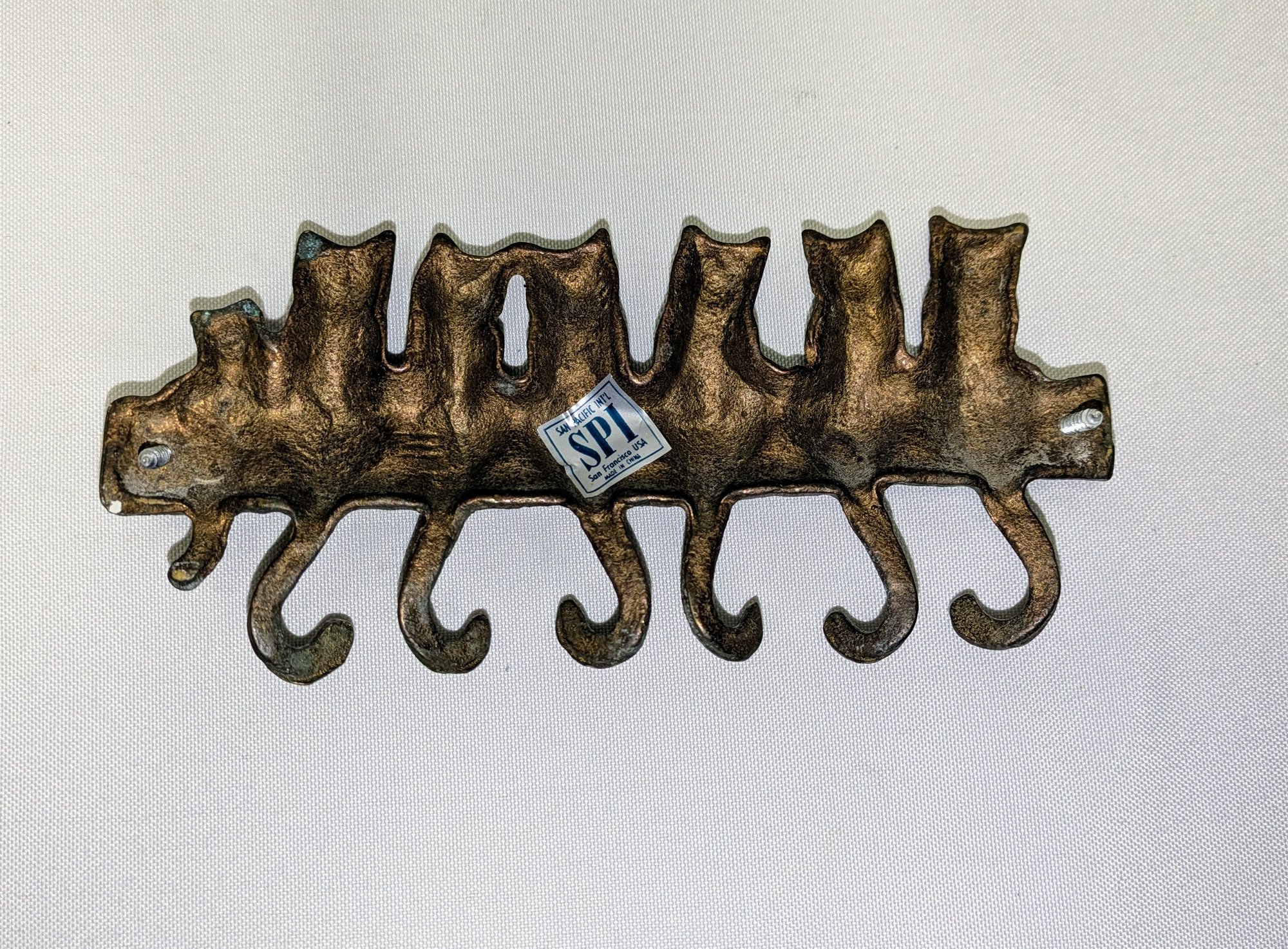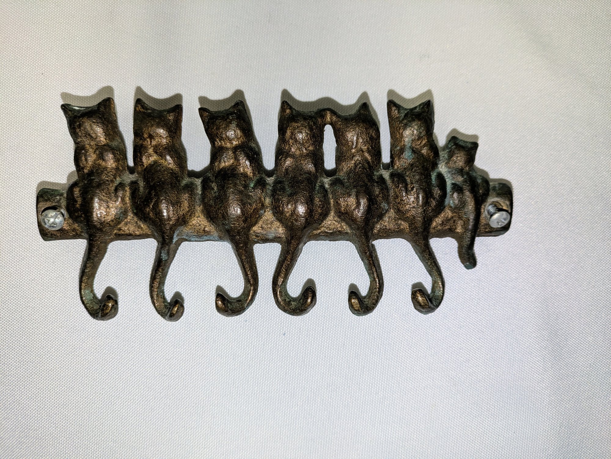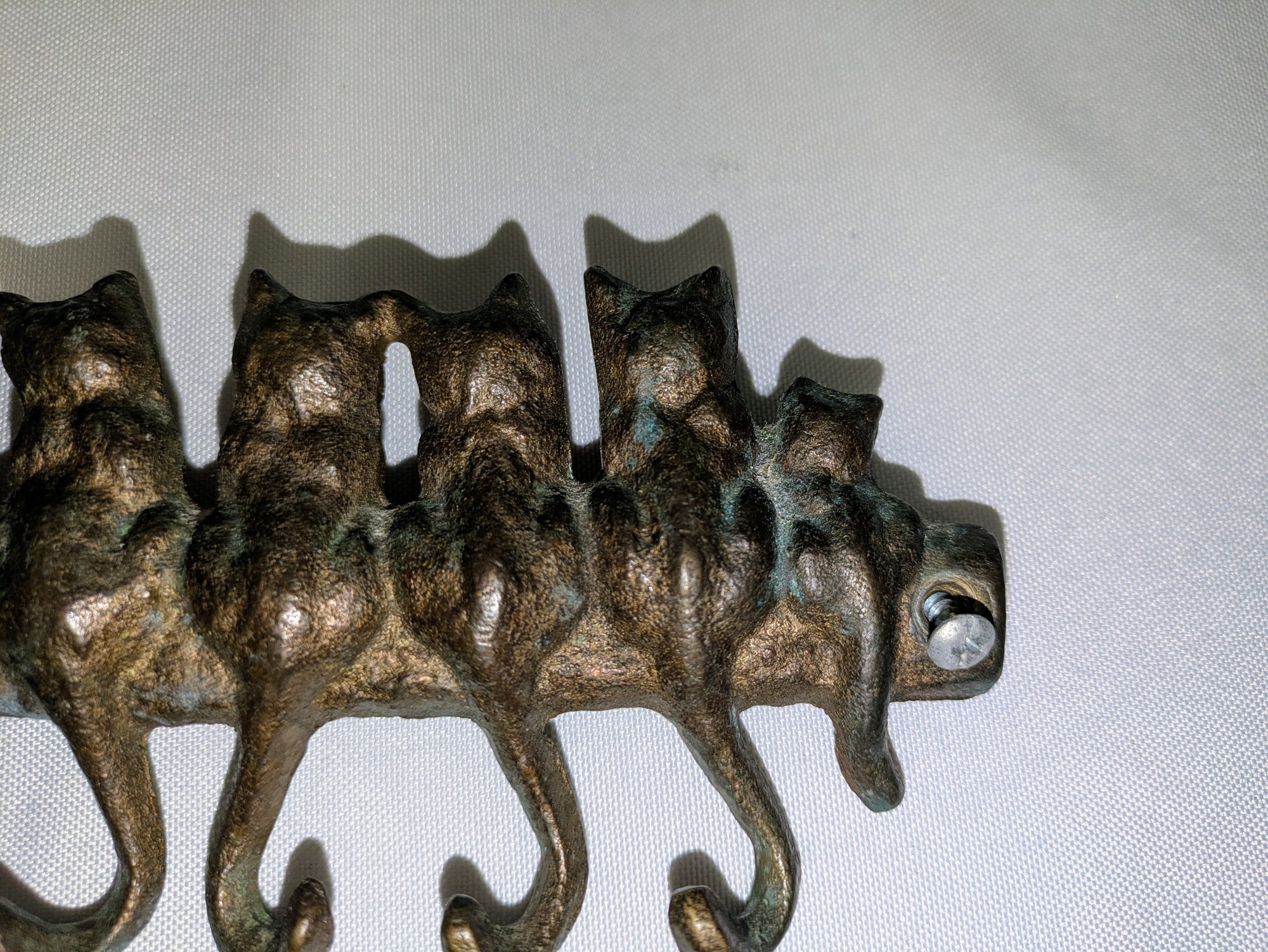7 Usable Cat Tail Detailed Hooks To Keep Keys/Leashes Readily Available. Natural patina, consistent with age and brass. Please see all photos as part of the description and condition. 3" x 6.75"