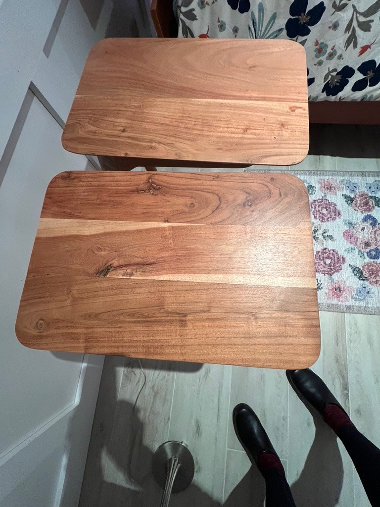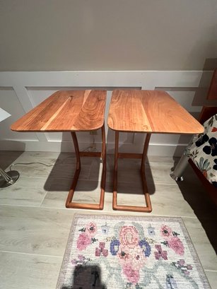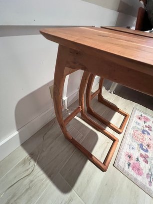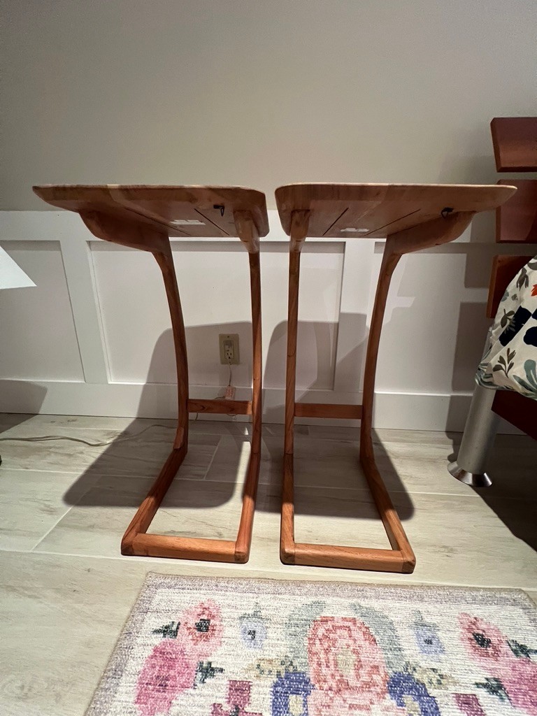 Scandinavian C-shaped Wood Brown Rectangular Chairside Table, excellent condition