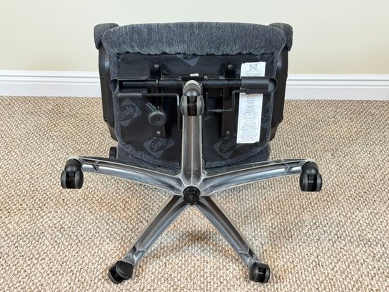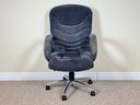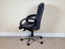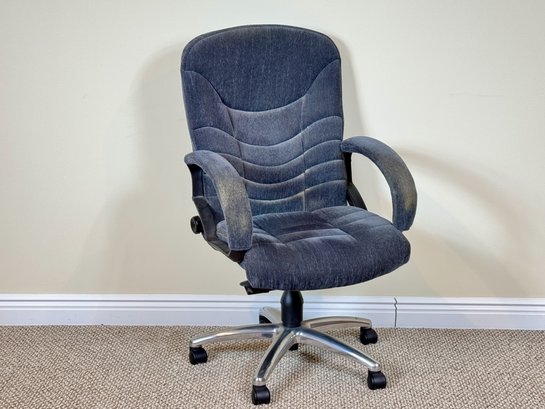 Featuring a softly contoured, channel-tufted backrest and generously padded seat, this chair offers supportive comfort. The chair swivels smoothly and rests on a five-star metal base with rolling casters for easy mobility.