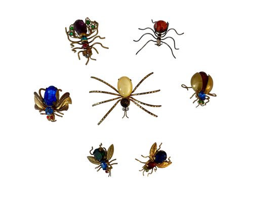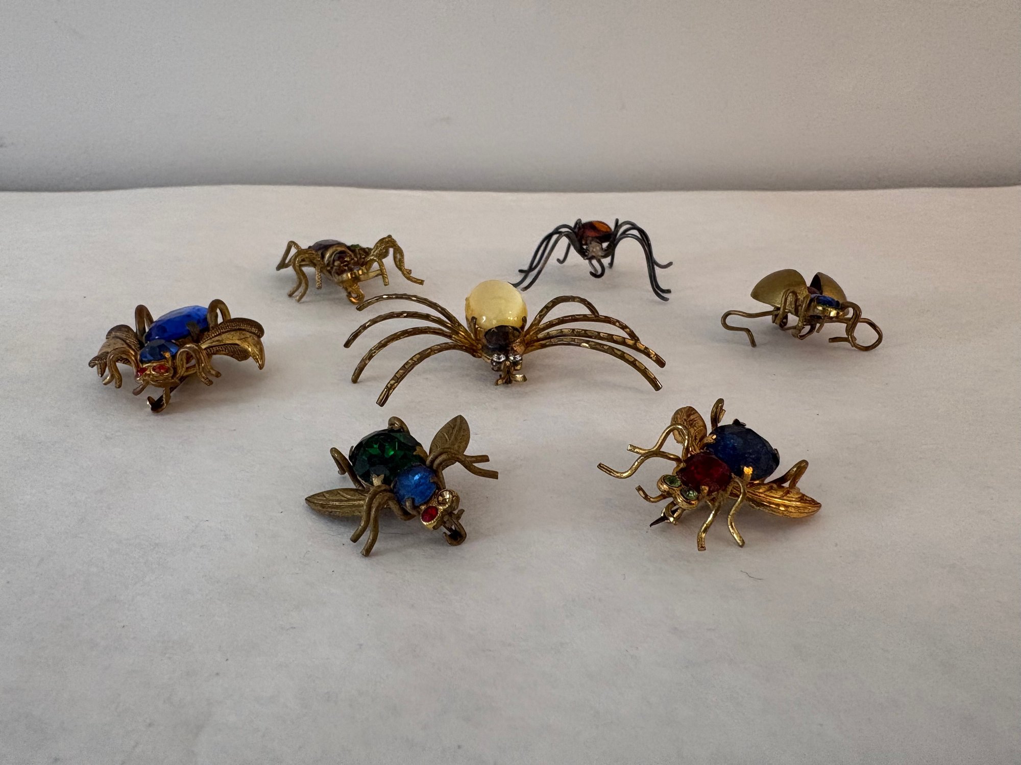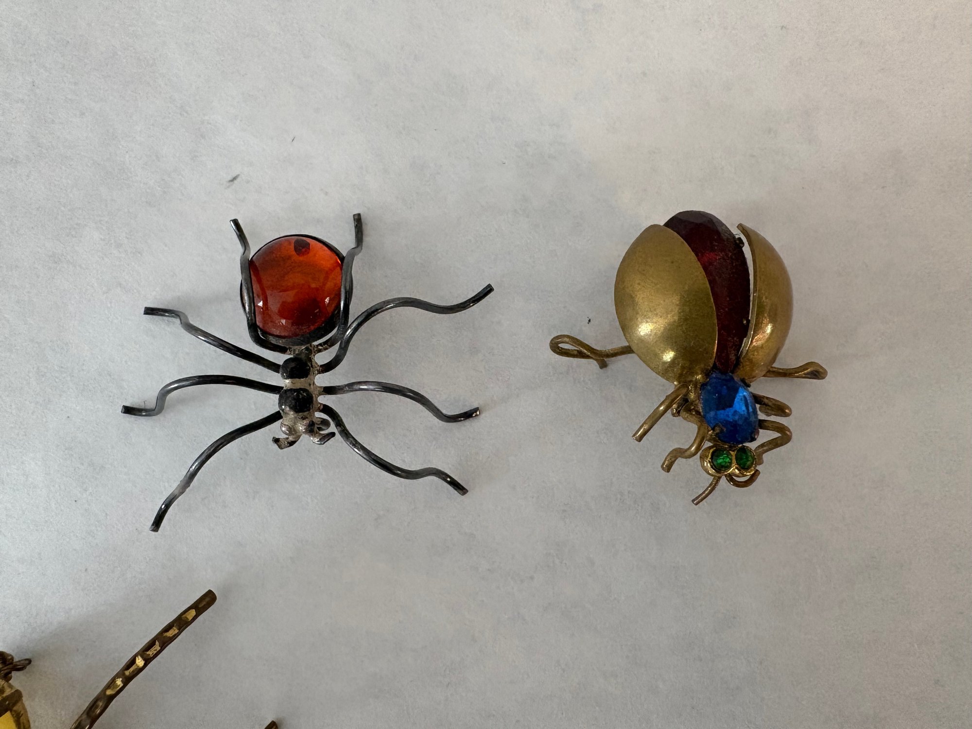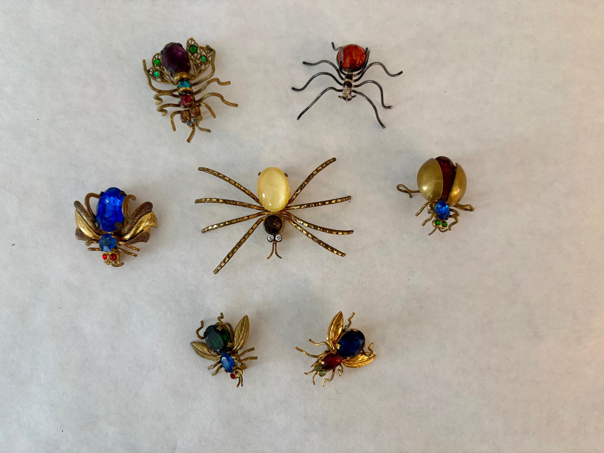 Selection of seven (7) vintage Czech glass and rhinestone insect figural brooches.