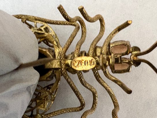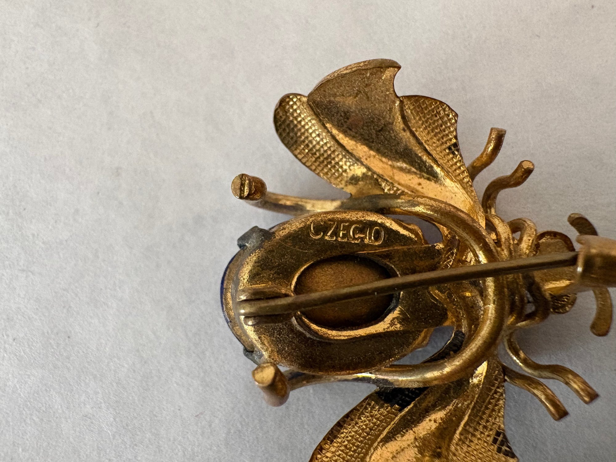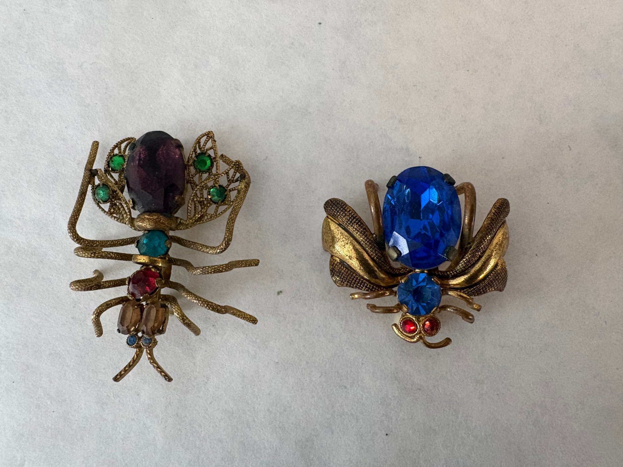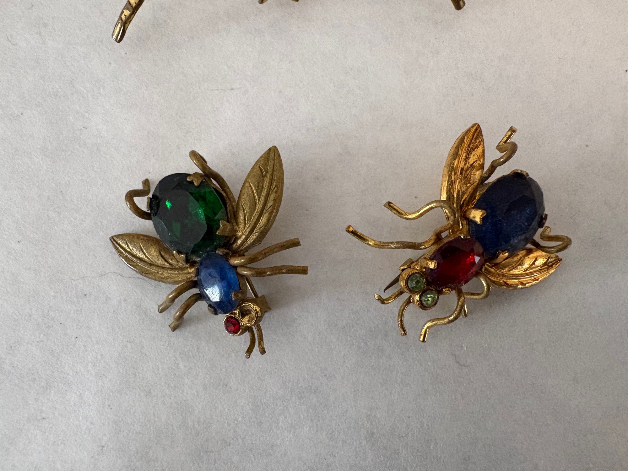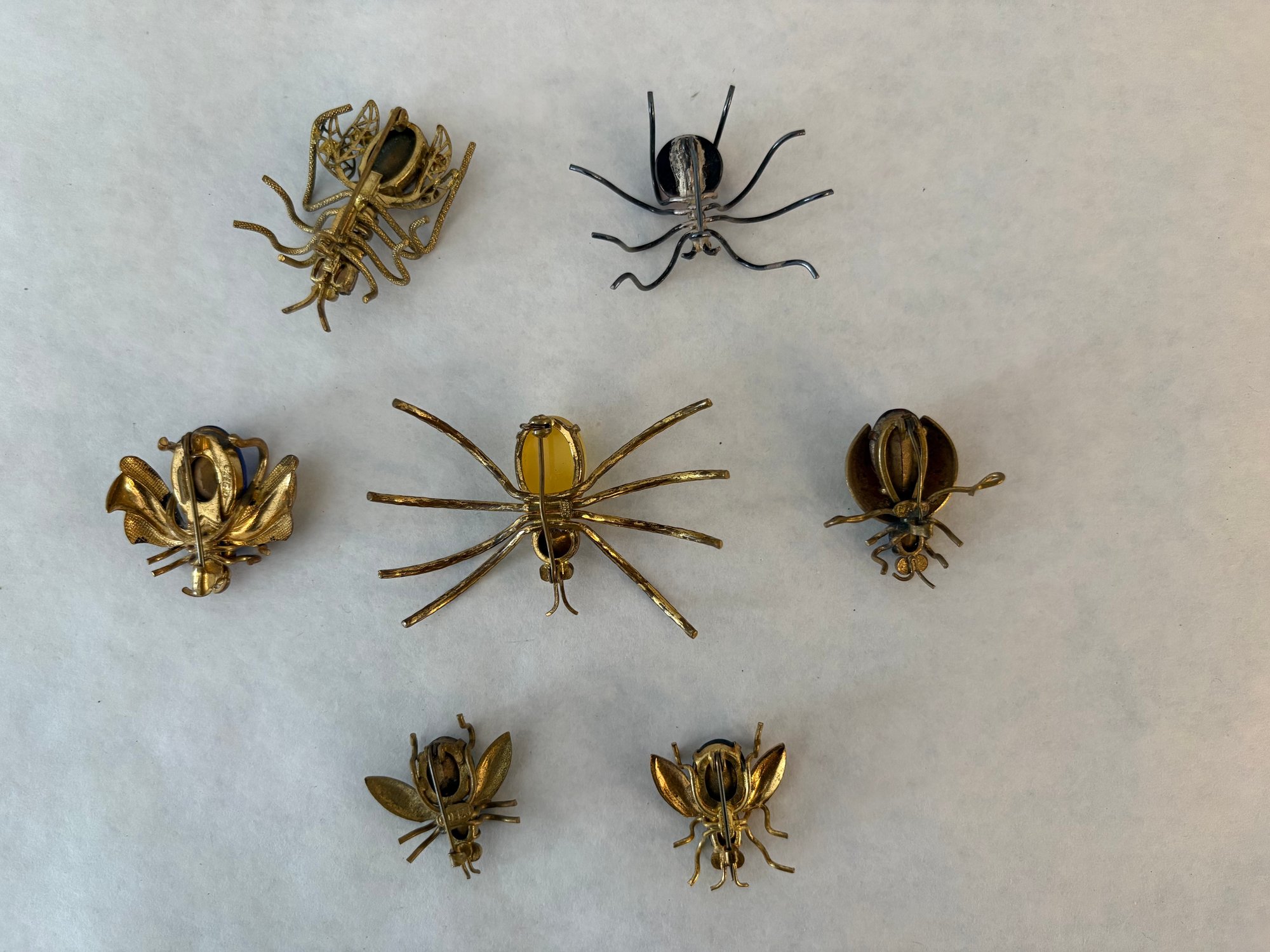 Selection of seven (7) vintage Czech glass and rhinestone insect figural brooches.