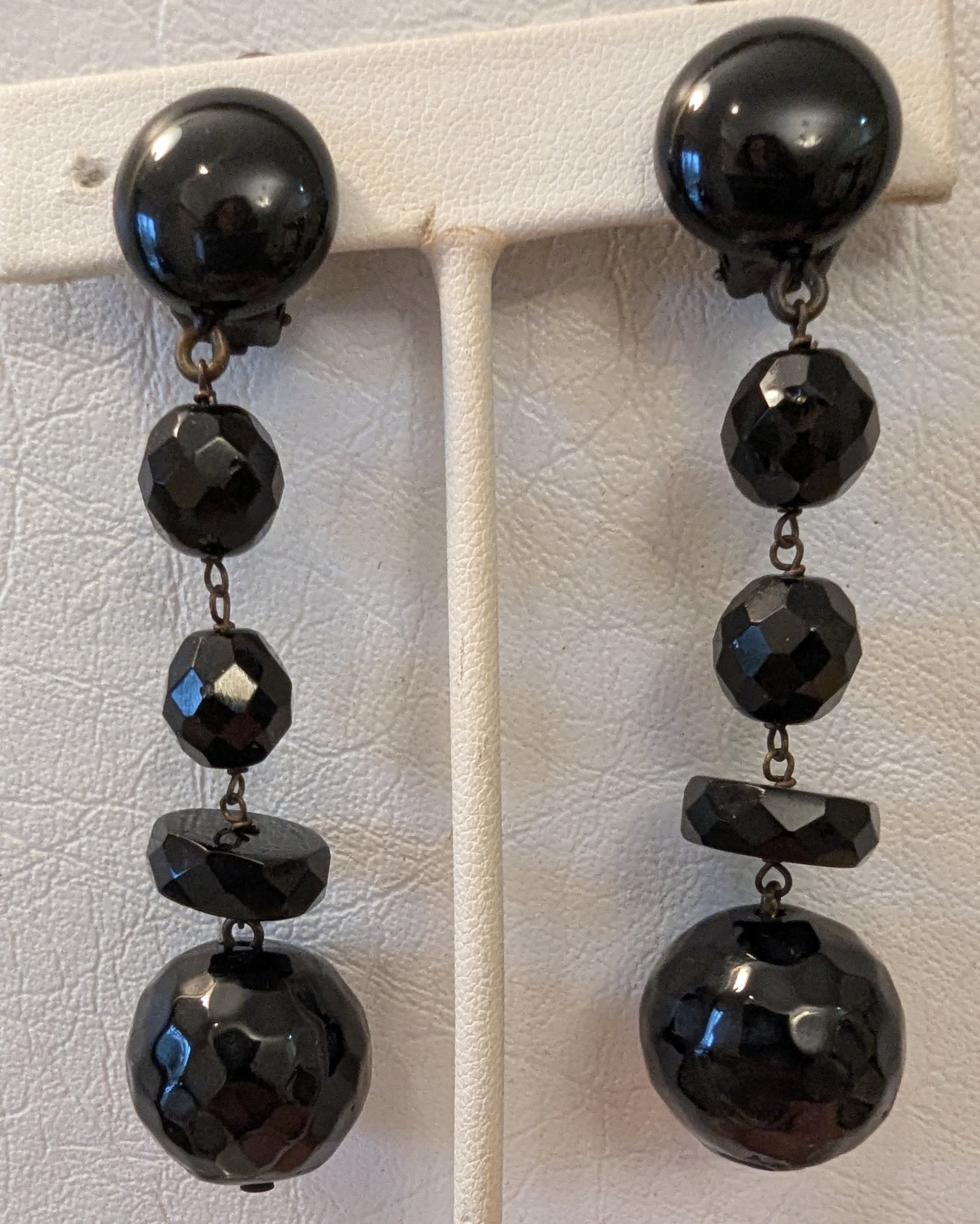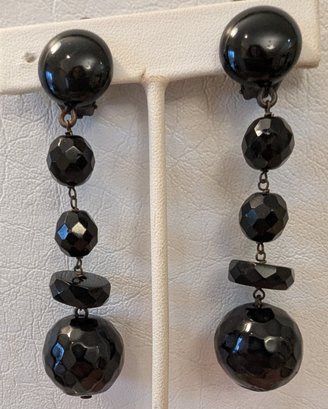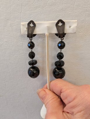 Sensational Vintage Dangling Women's Black Ceramic And Crystal Earrings