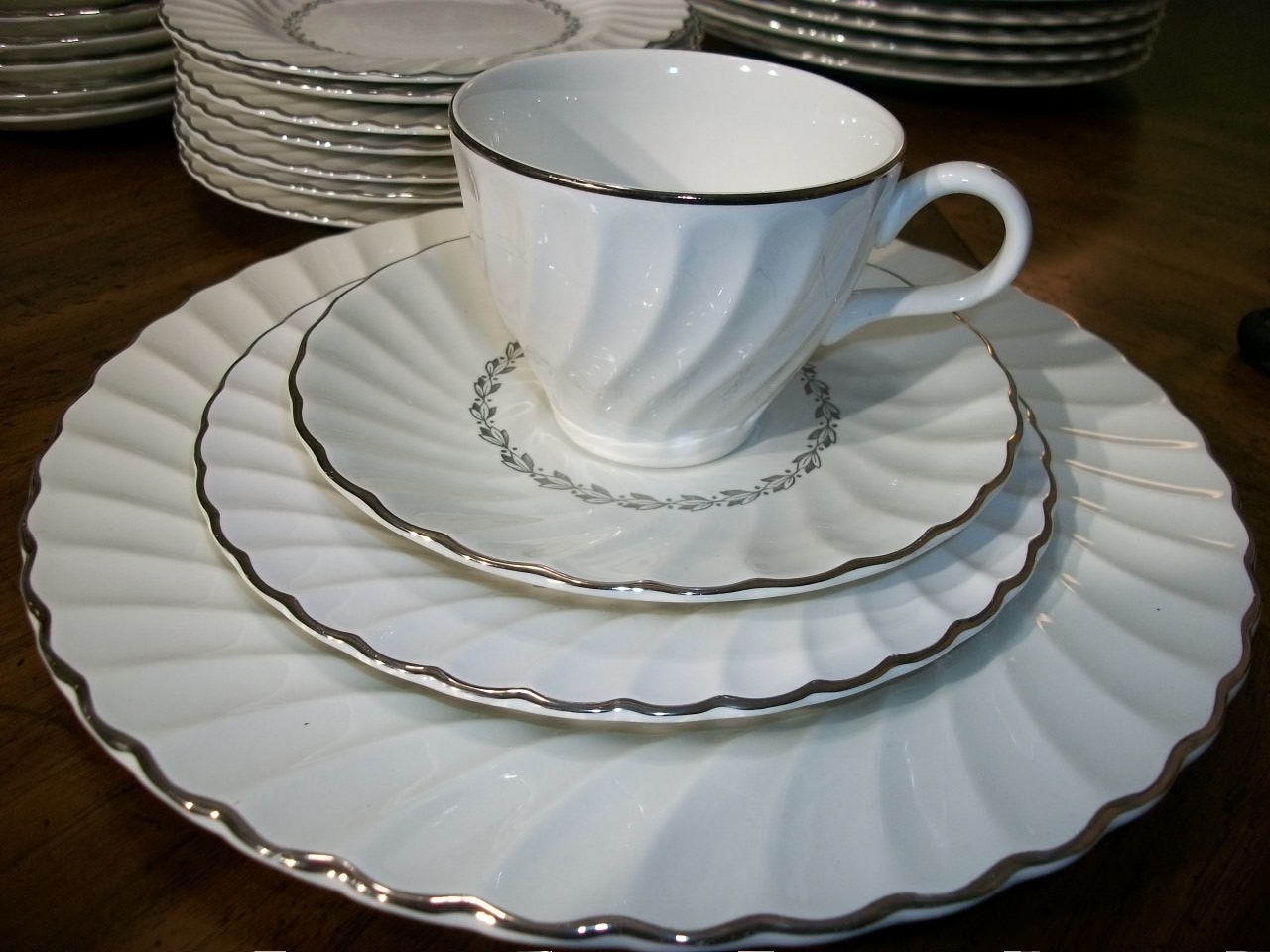 very nice set. . . simple yet elegant. . . .I dont see any damage (may or may not have some flaws). . . . .not marked but I know that is the maker / pattern