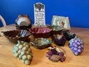 3 leaf bowls, 3 leaf tidbits, 4 acorn bowls; 4 grape coasters, grape& wine decor ; wall hanging