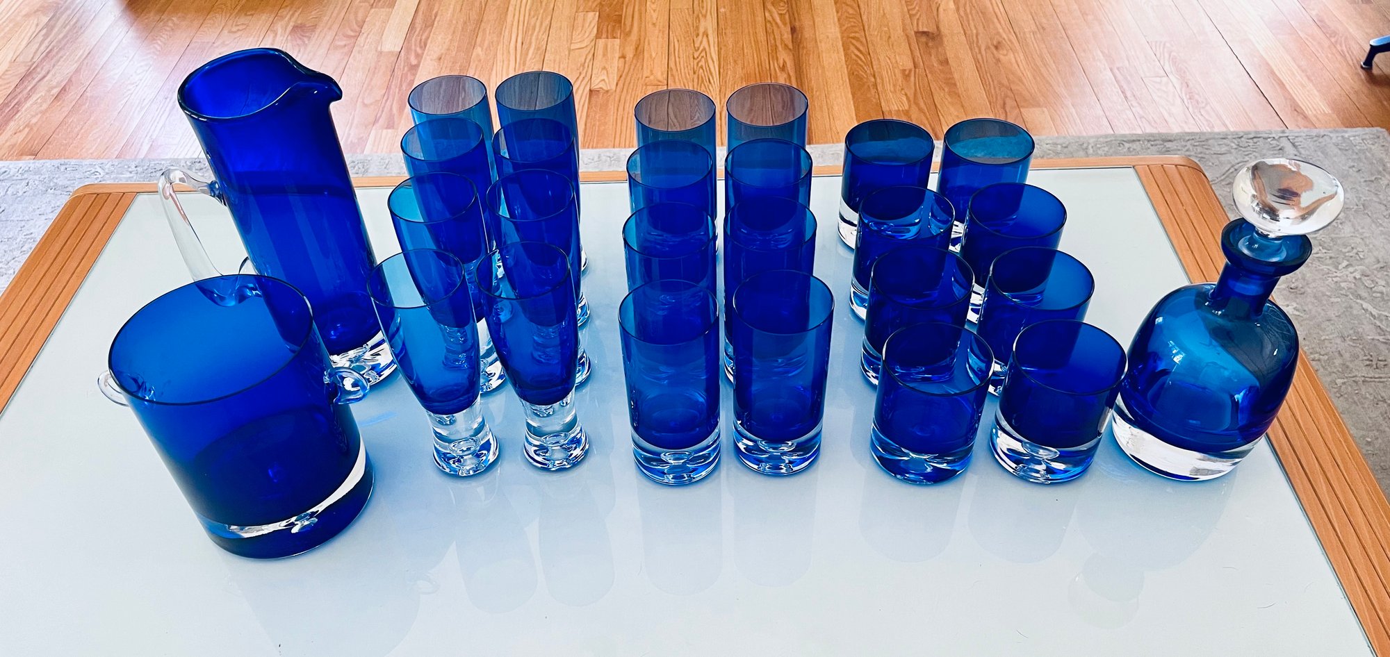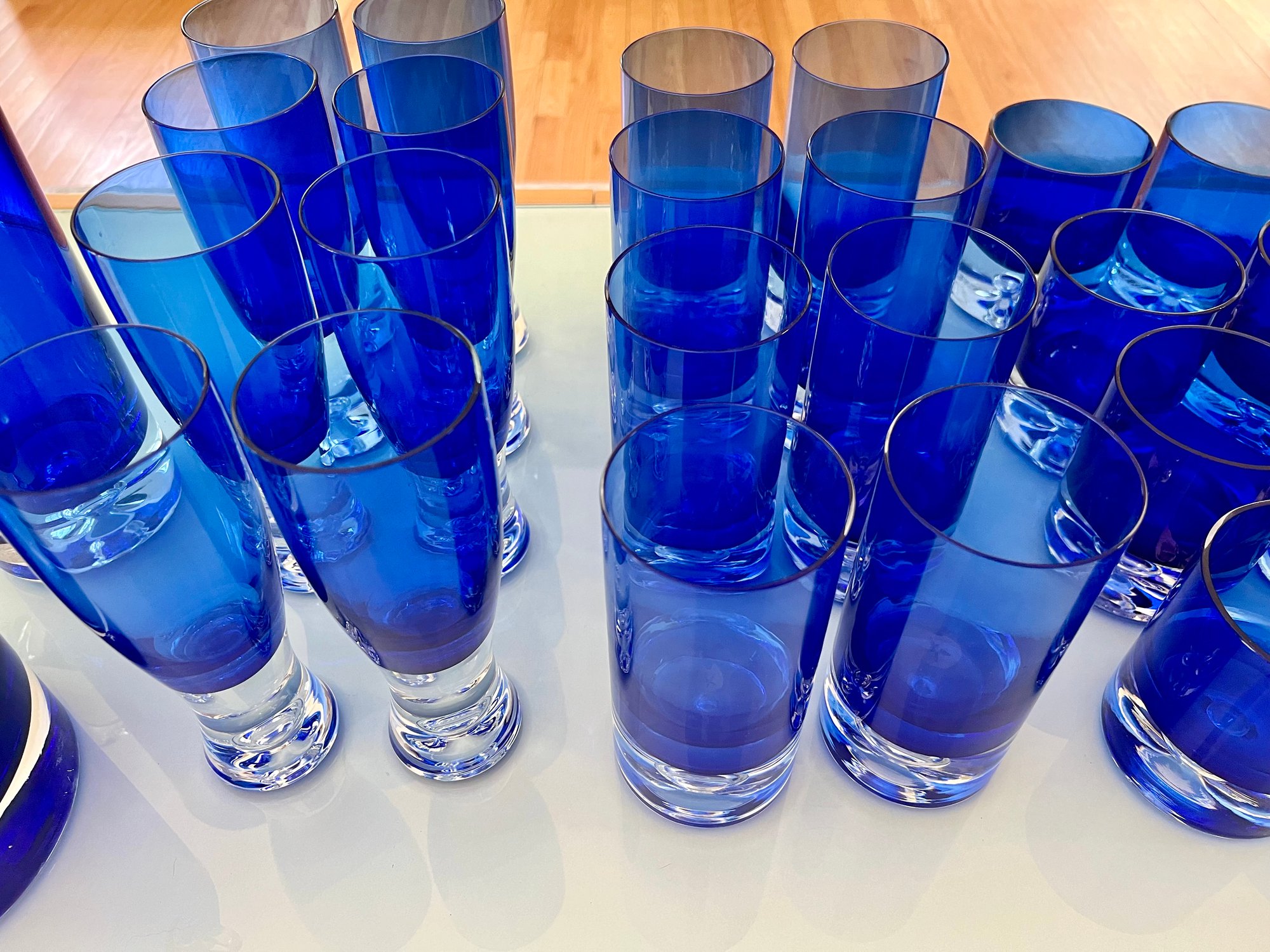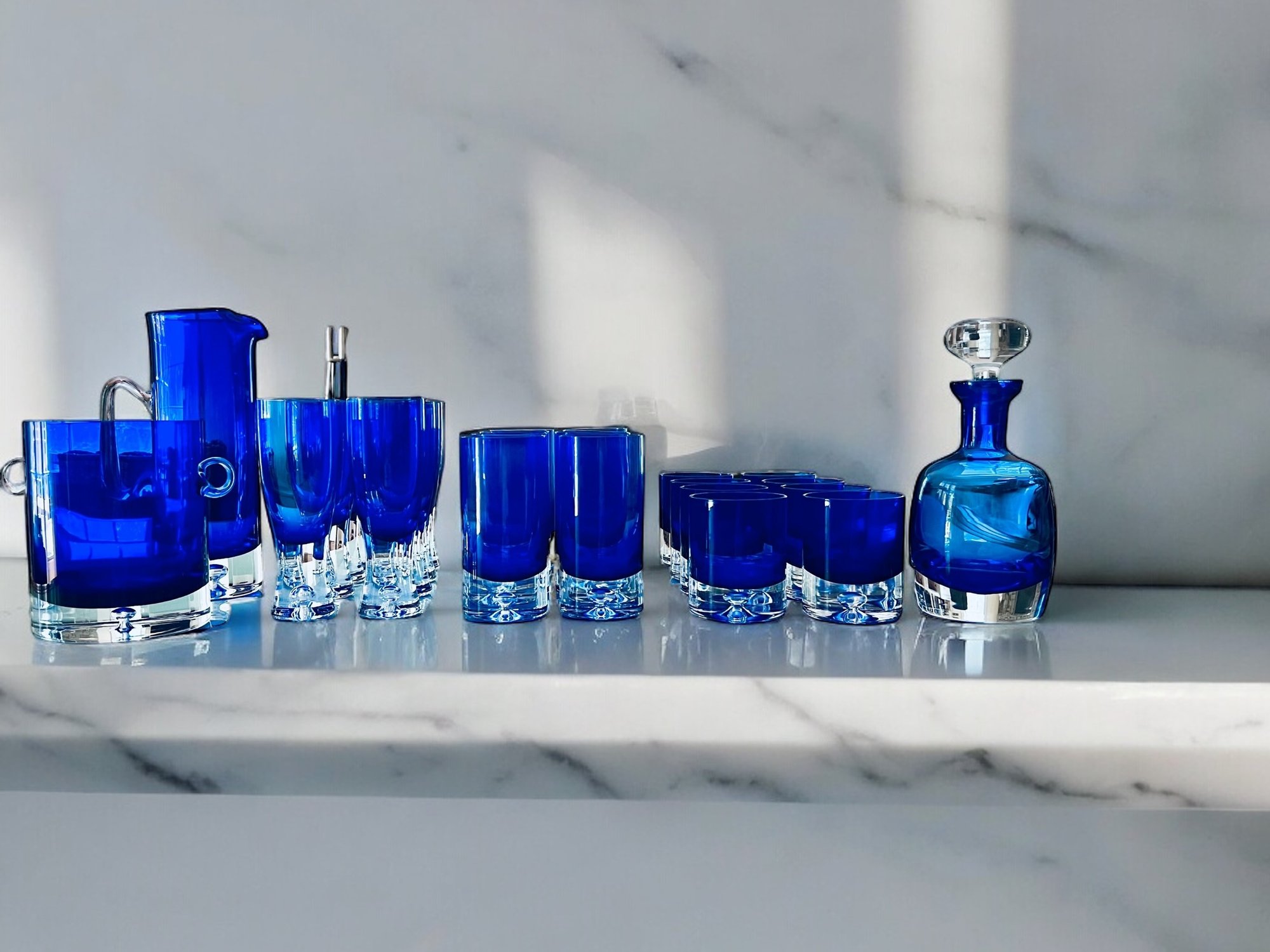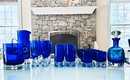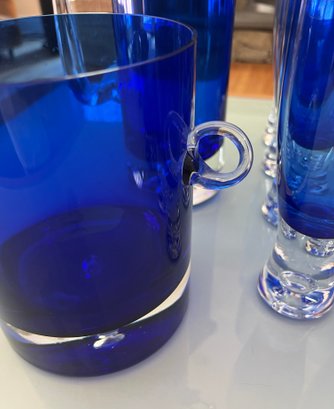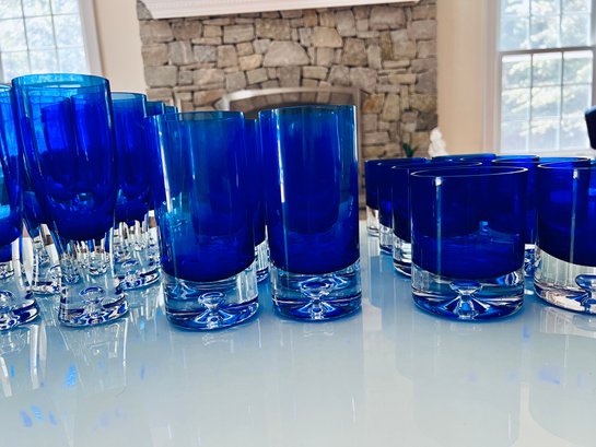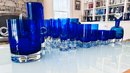 Set of Cobalt Blue Crystal Glassware Grouping Includes: