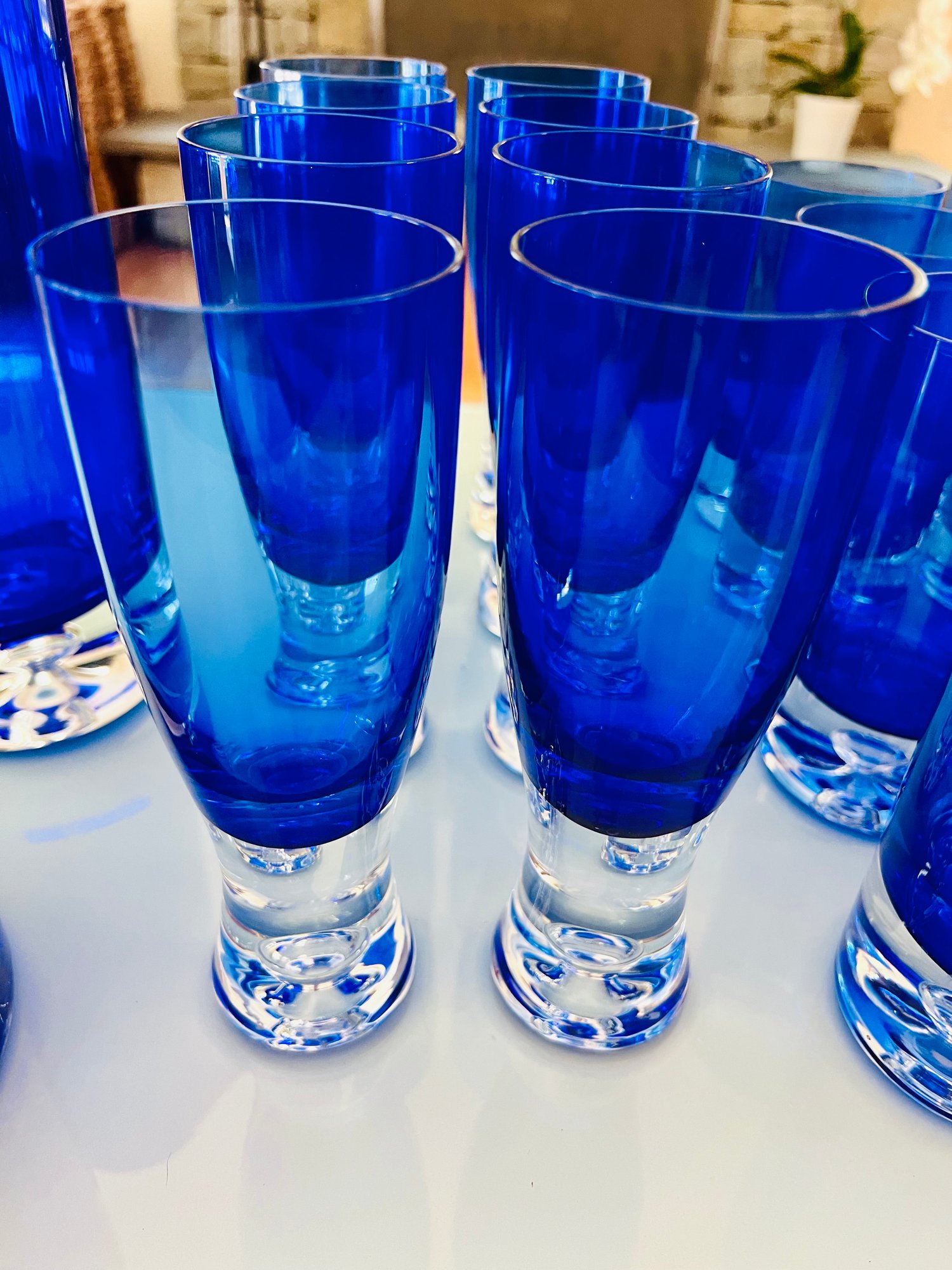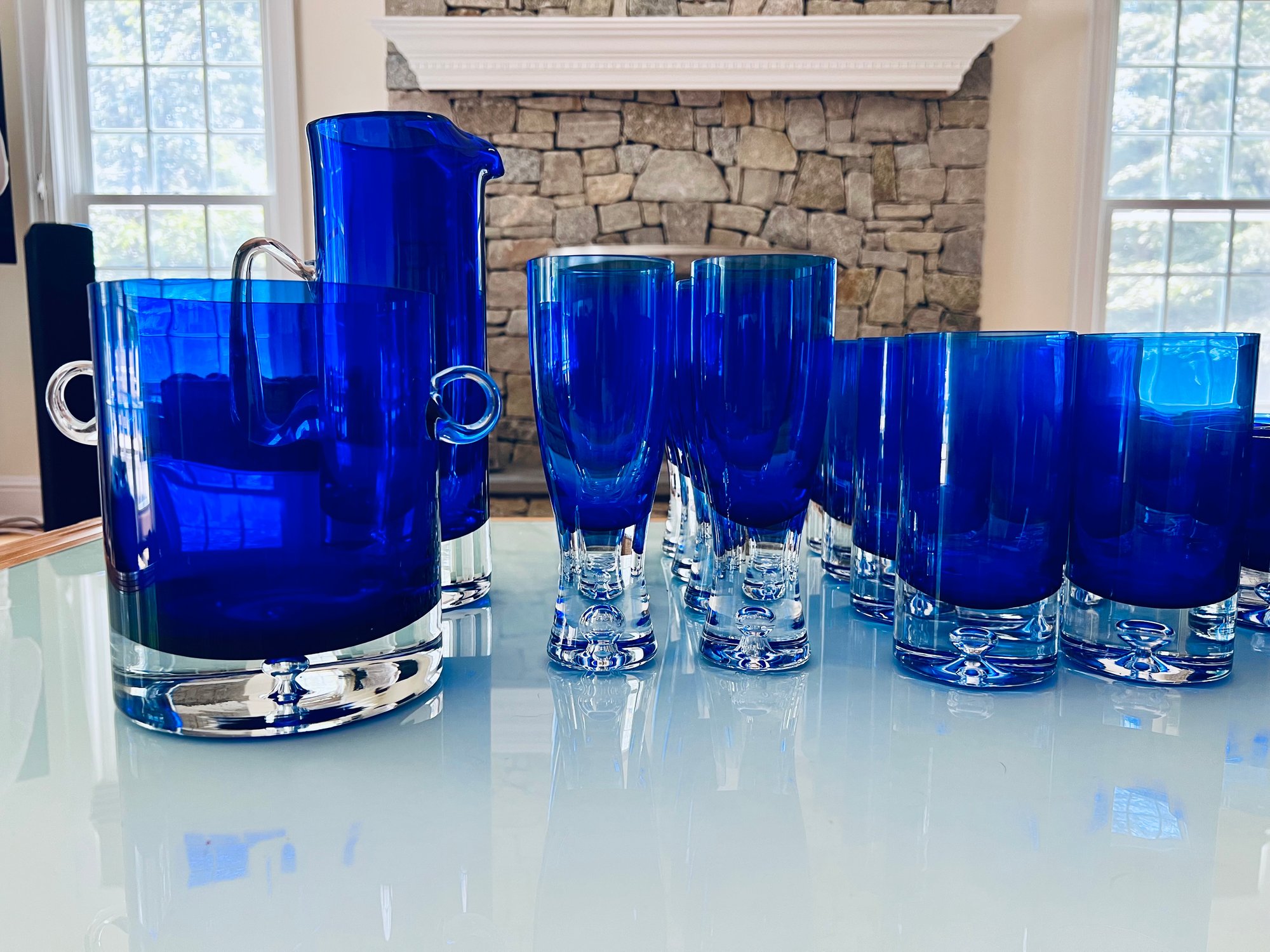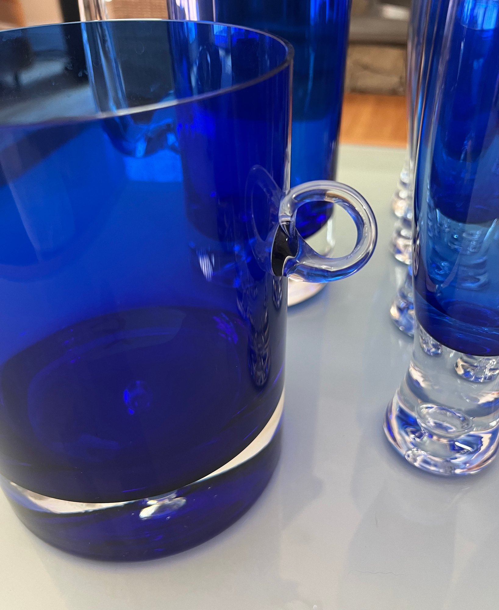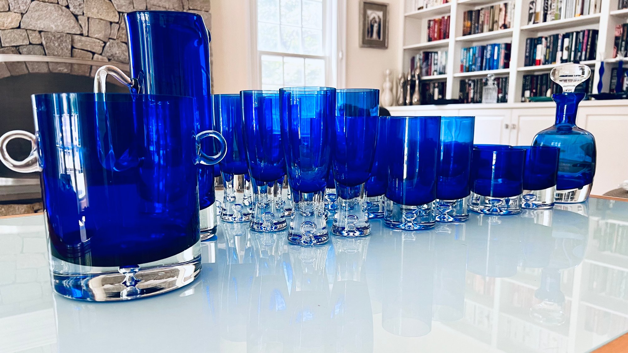 Set of Cobalt Blue Crystal Glassware Grouping Includes: