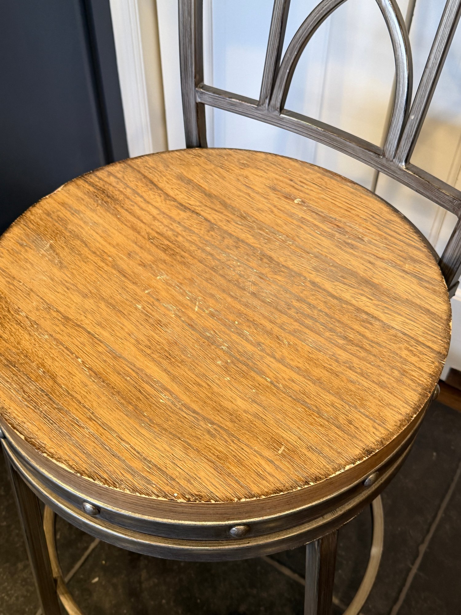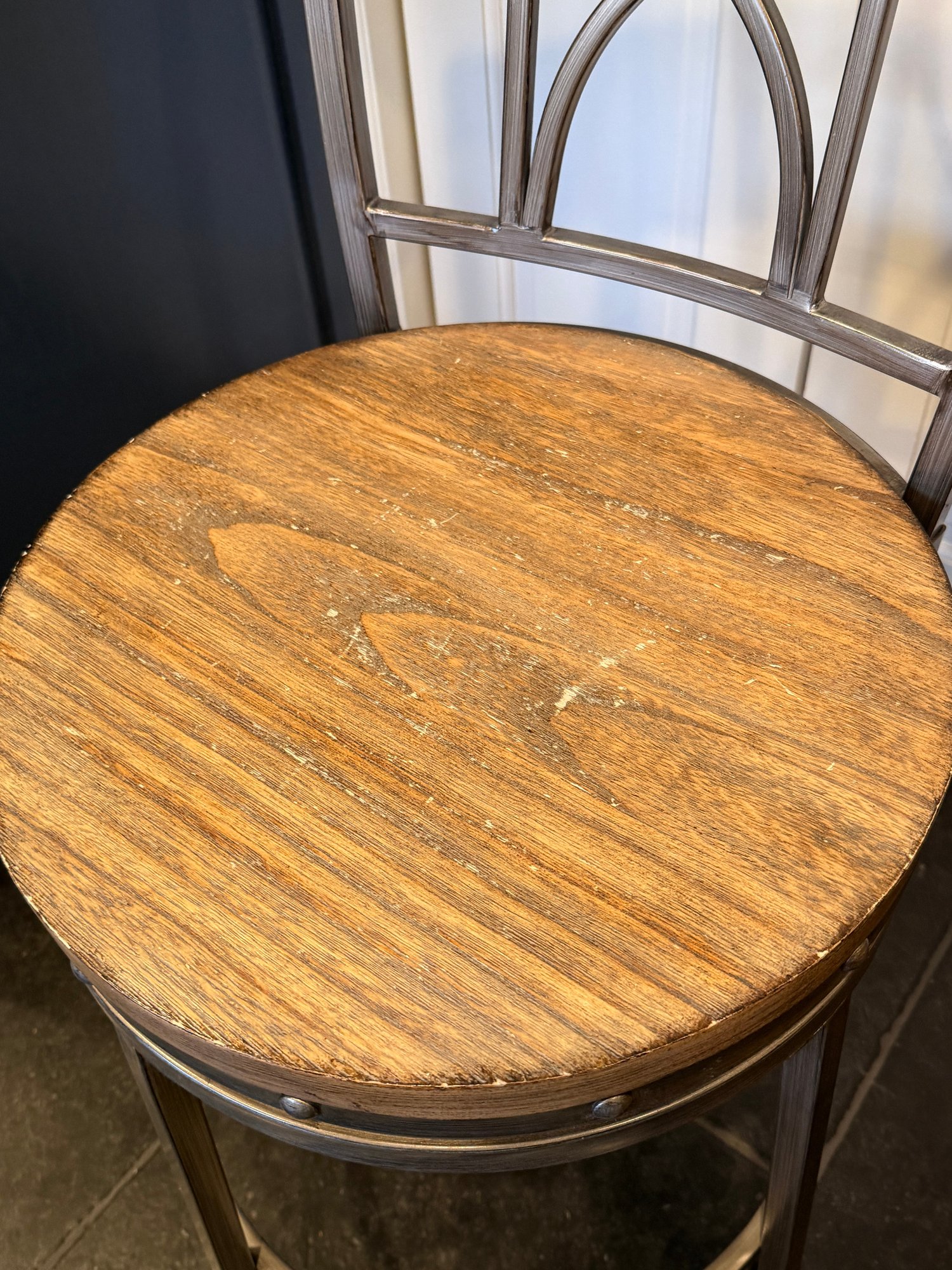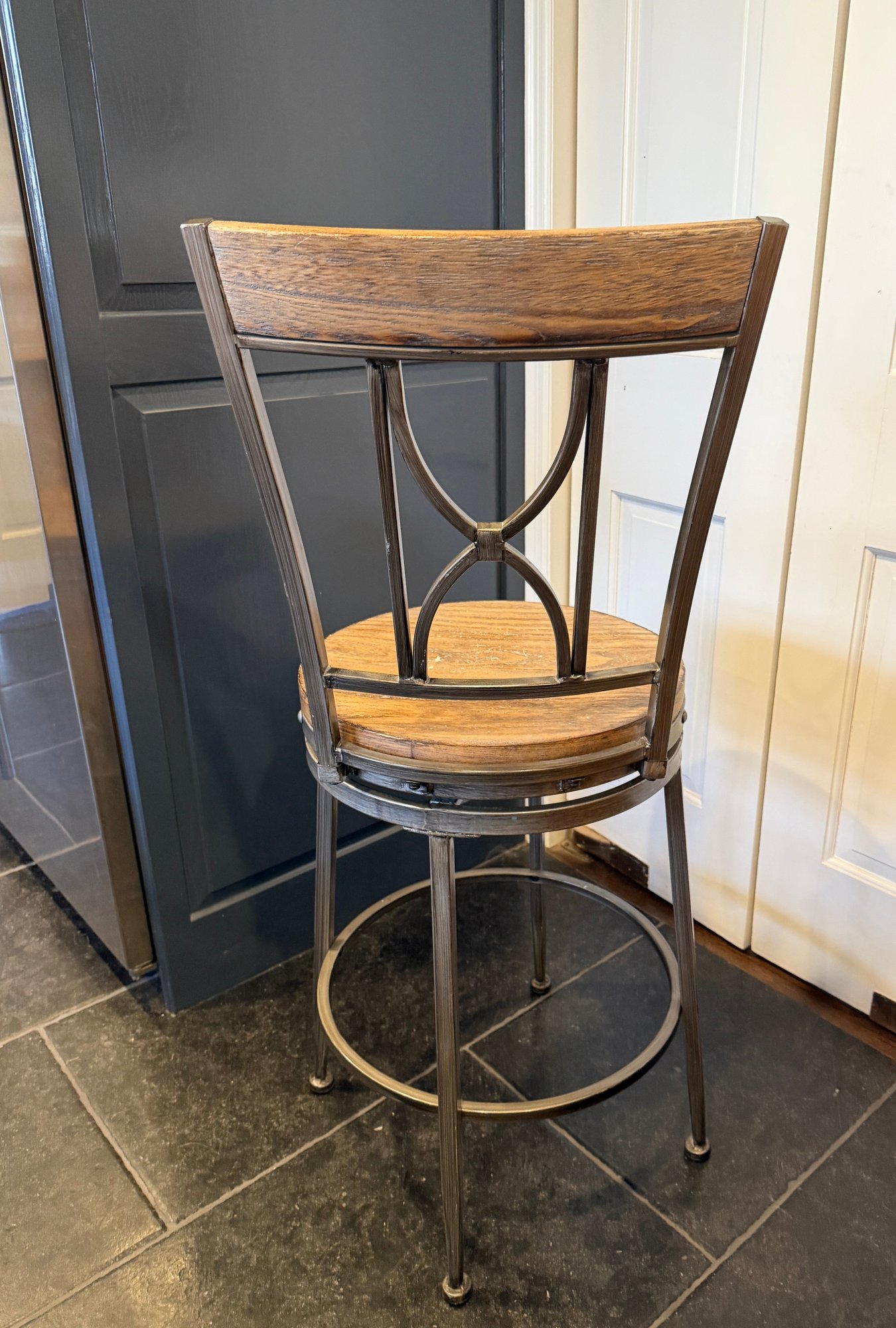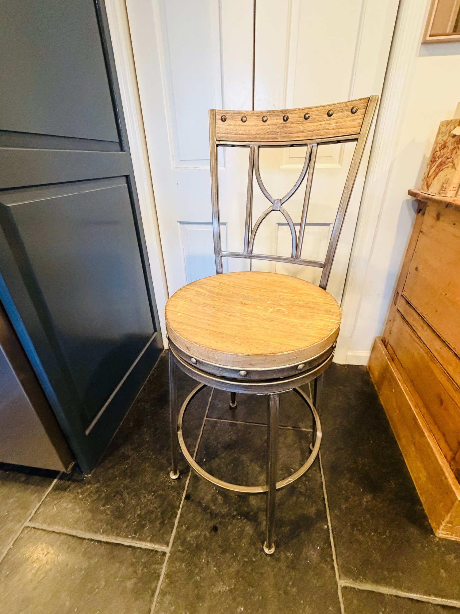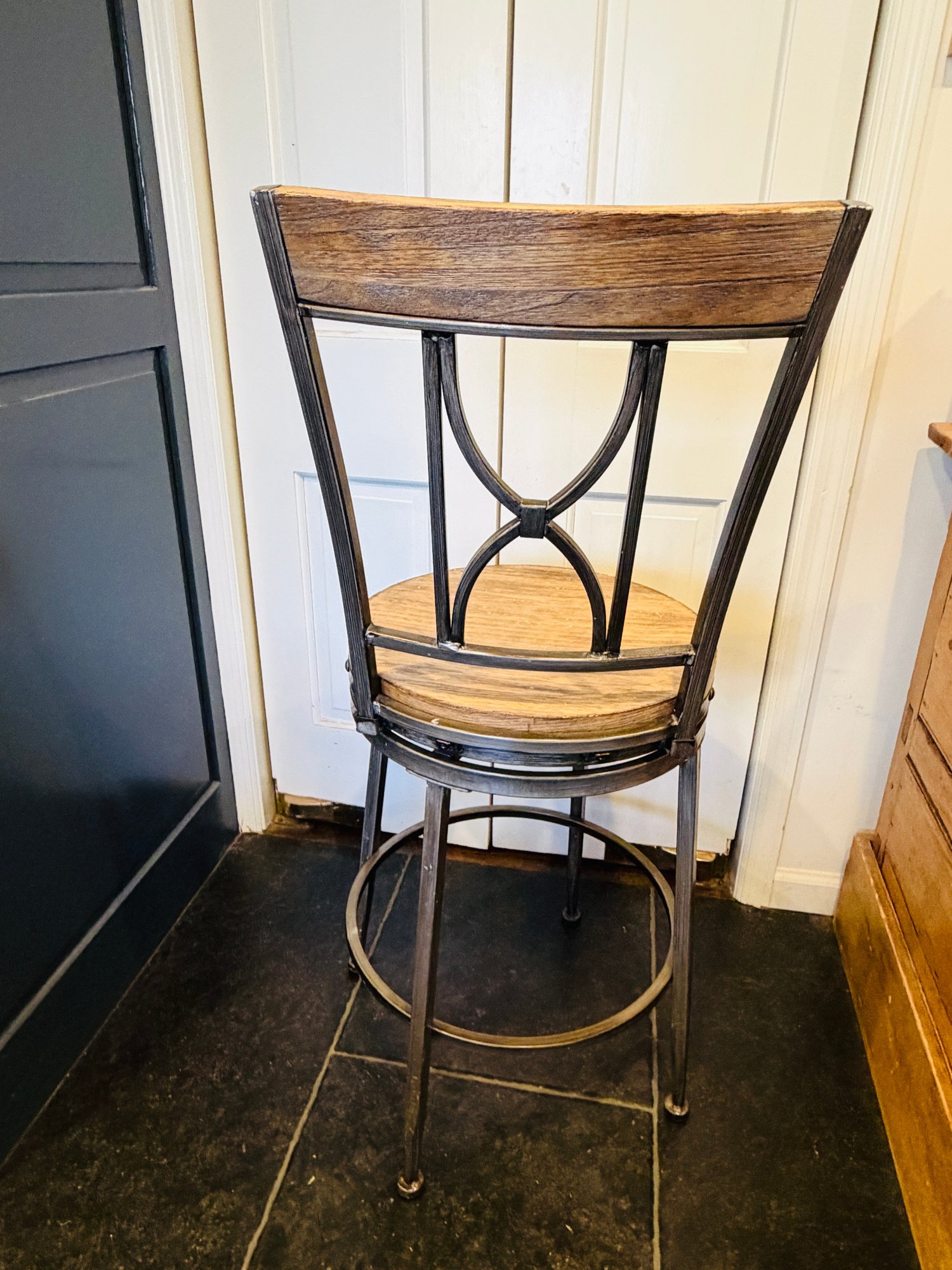 Industrial meets rustic counter height stools.
