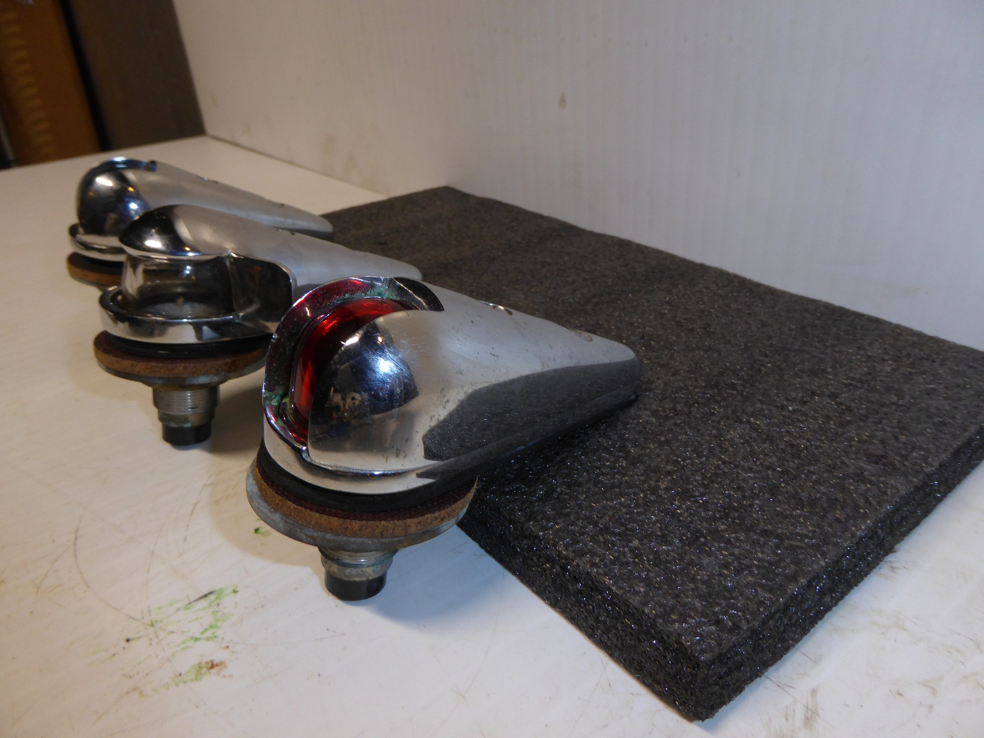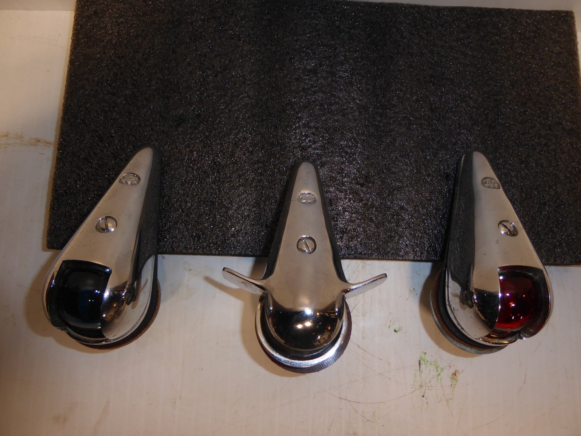 Set Of 3 Vintage Chrome Boating Lights - Blue, Red, Clear