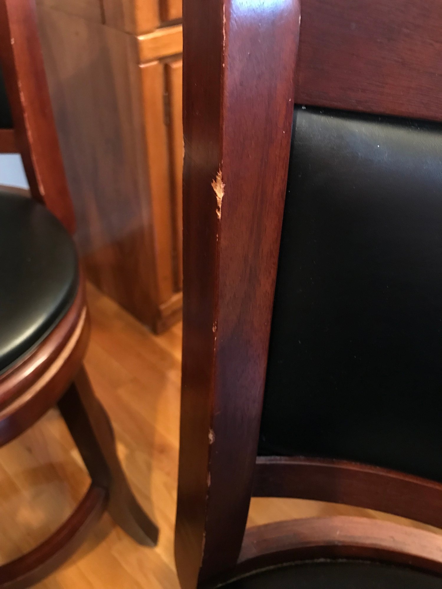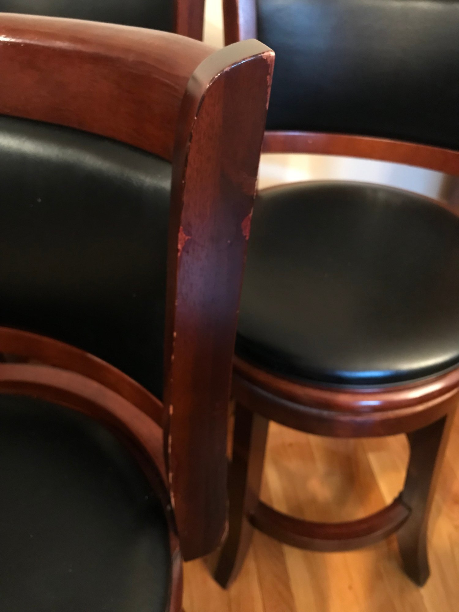 They have nicks and scratches and one cushion is flipped up a bit (see photo)