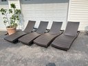 These have cushions, although they could use a cleaning. Chairs are good, a couple small broken pieces on the webbing but overall good. The legs fold in for transport. Also have a set of covers for the loungers, although the covers are dirty. Measure 78” length, 26” width, 33” height.