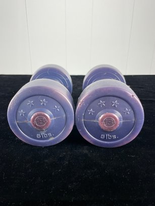Five pound dumbbell set. Two included. Few scratches and damages seen in images. See photos for more conditions and sizing.