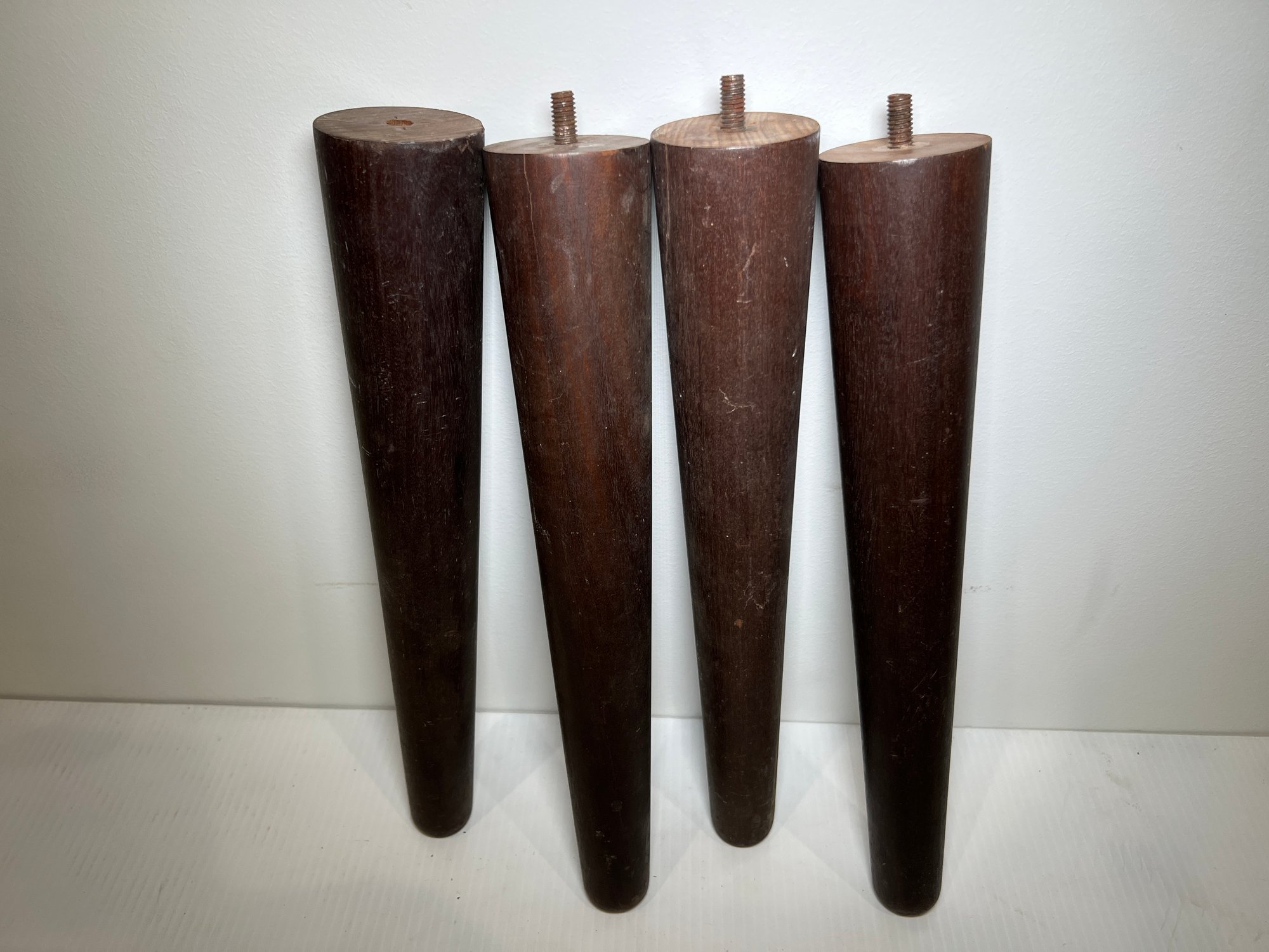 Set of four tapered dark stained wooden dowel mid century modern furniture legs.