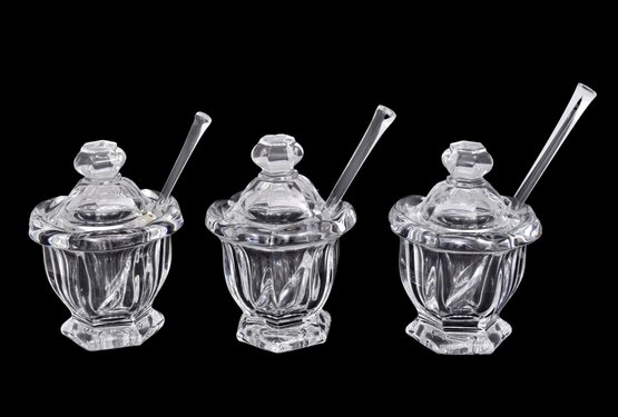 Condition: one spoon has a tiny chip and one of the lids has a chip. Please view all photos as they are deemed part of the description.
