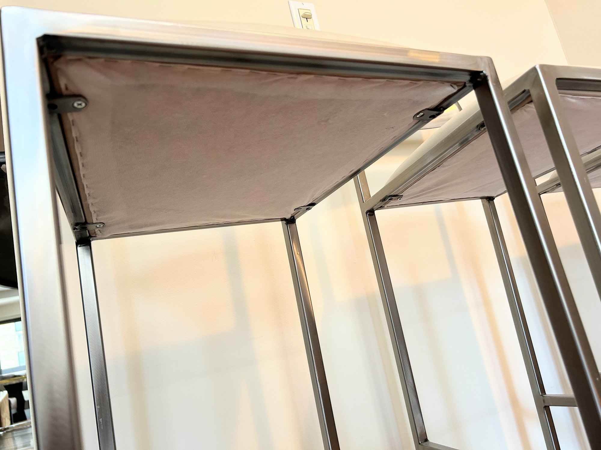 Light wear and spots to seats on two stools. Present well overall.