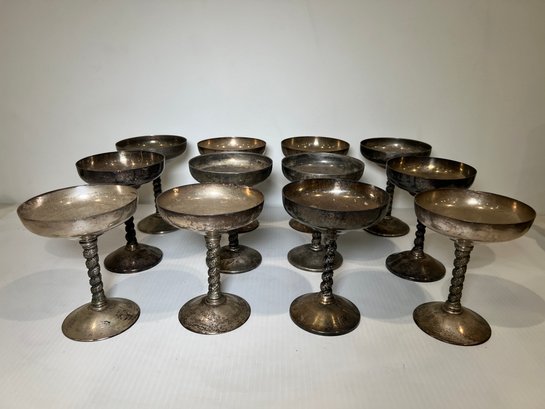 Set of twelve vintage or antique Spanish made silver electroplated chalices.